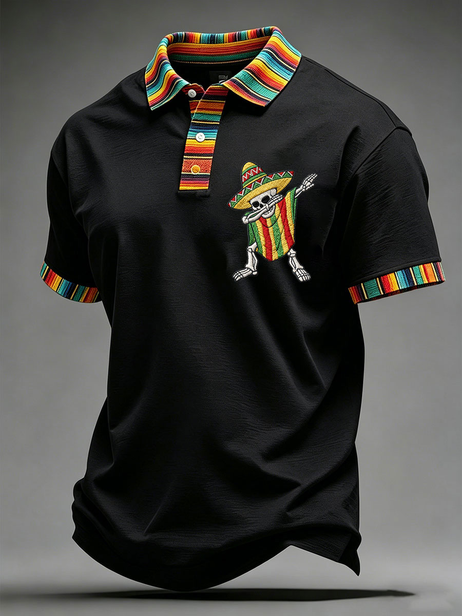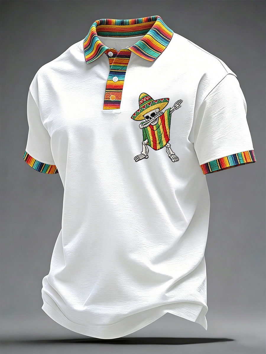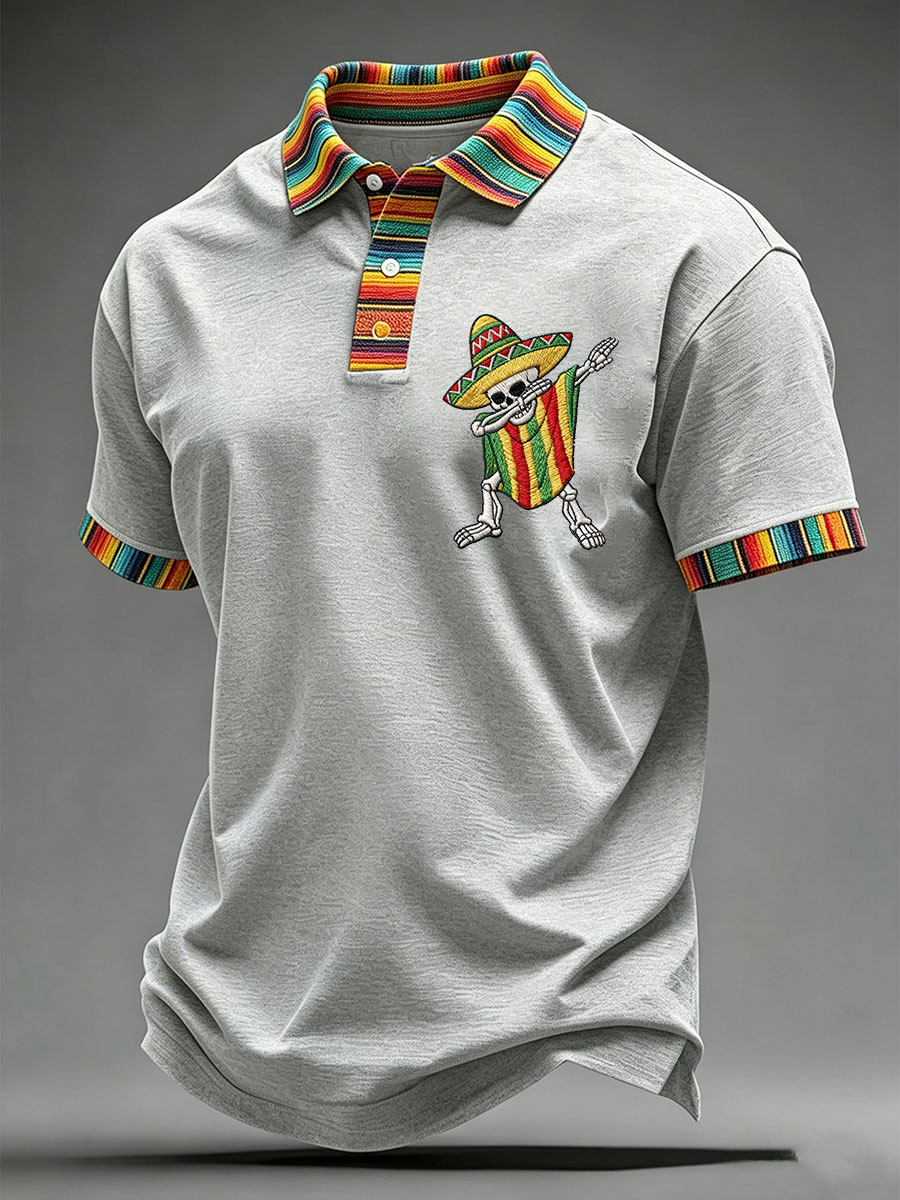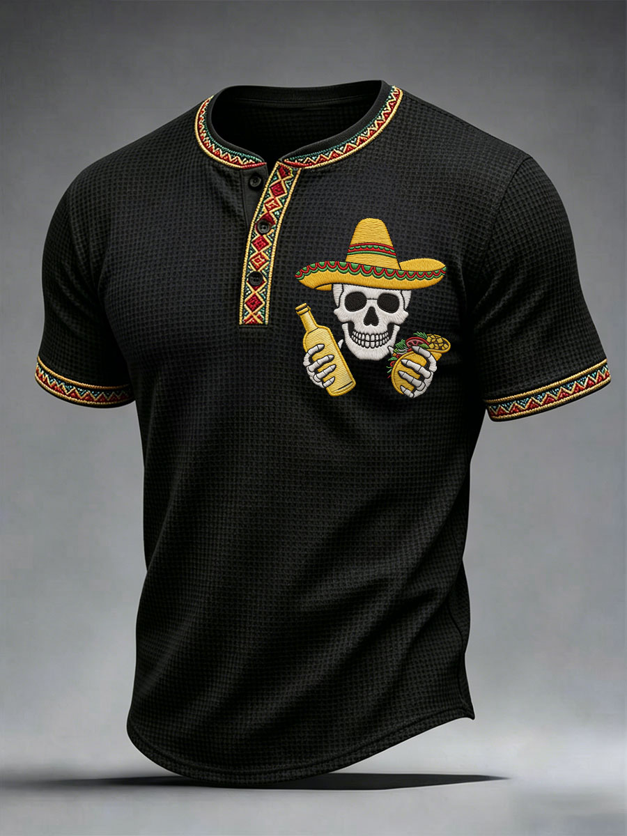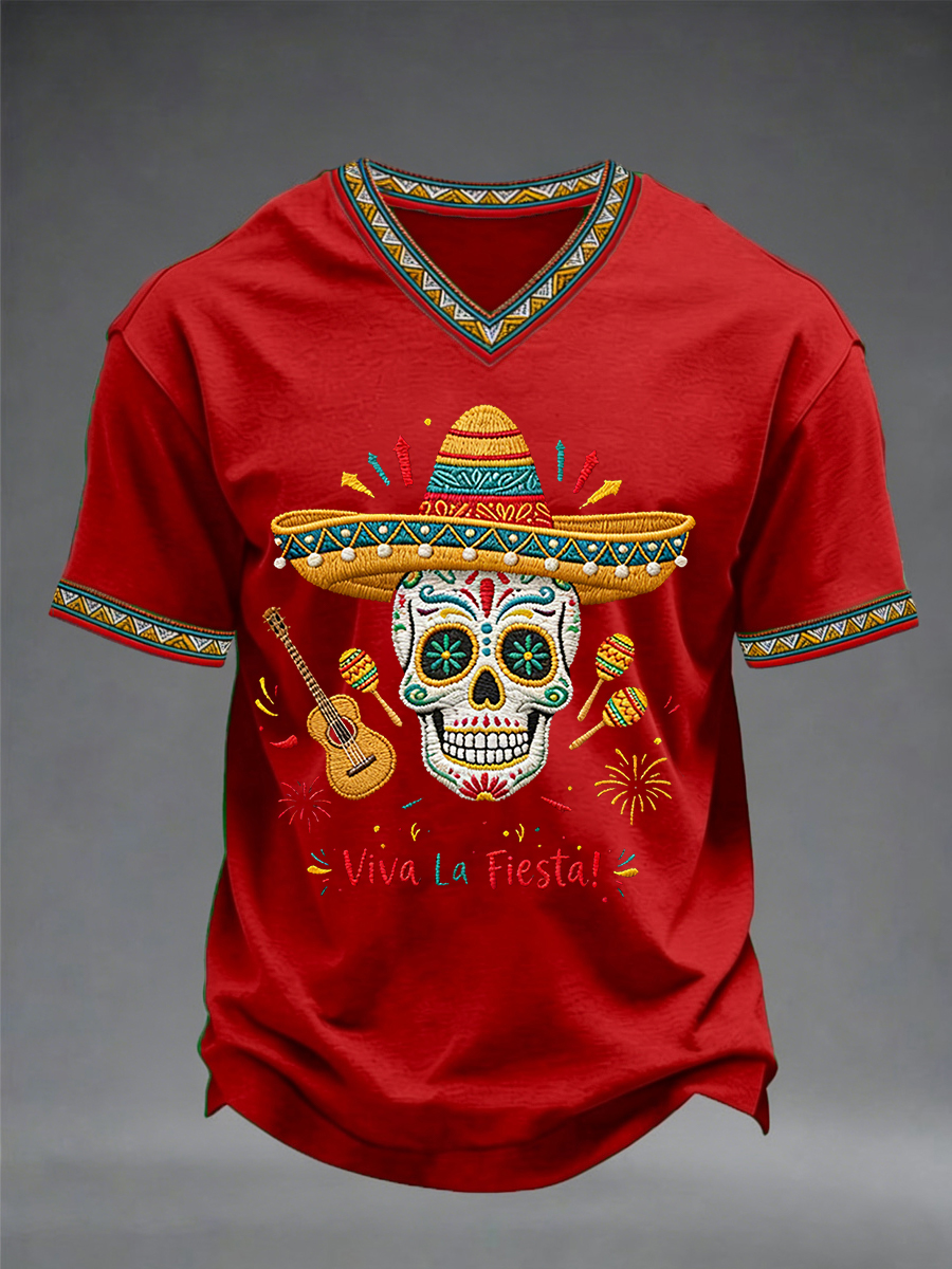 Men's Viva La Fiesta! Skeleton Print Casual V-Neck Tee