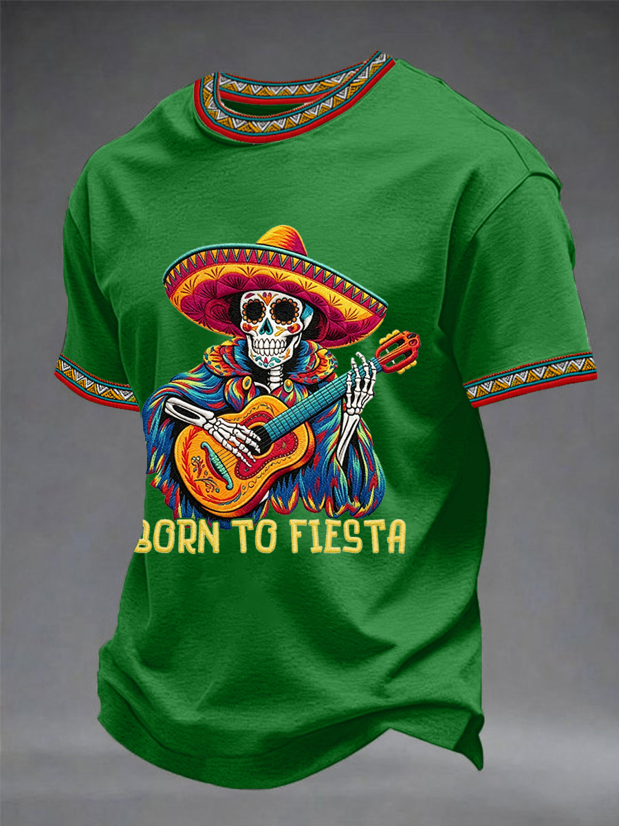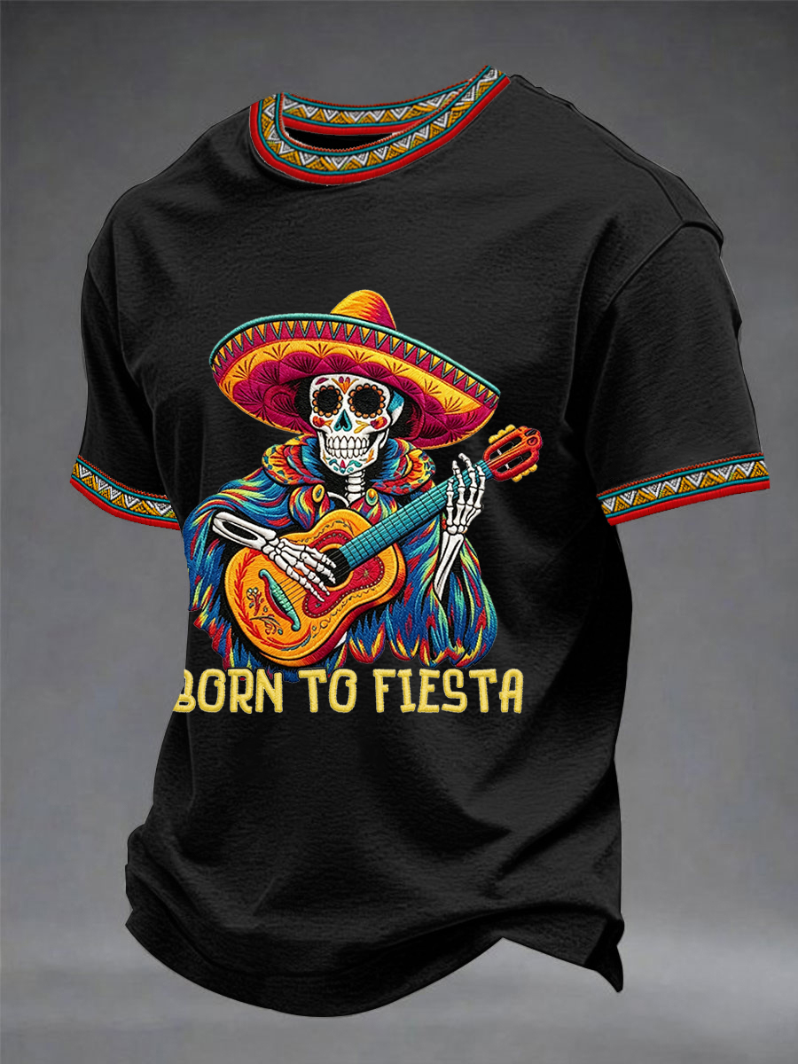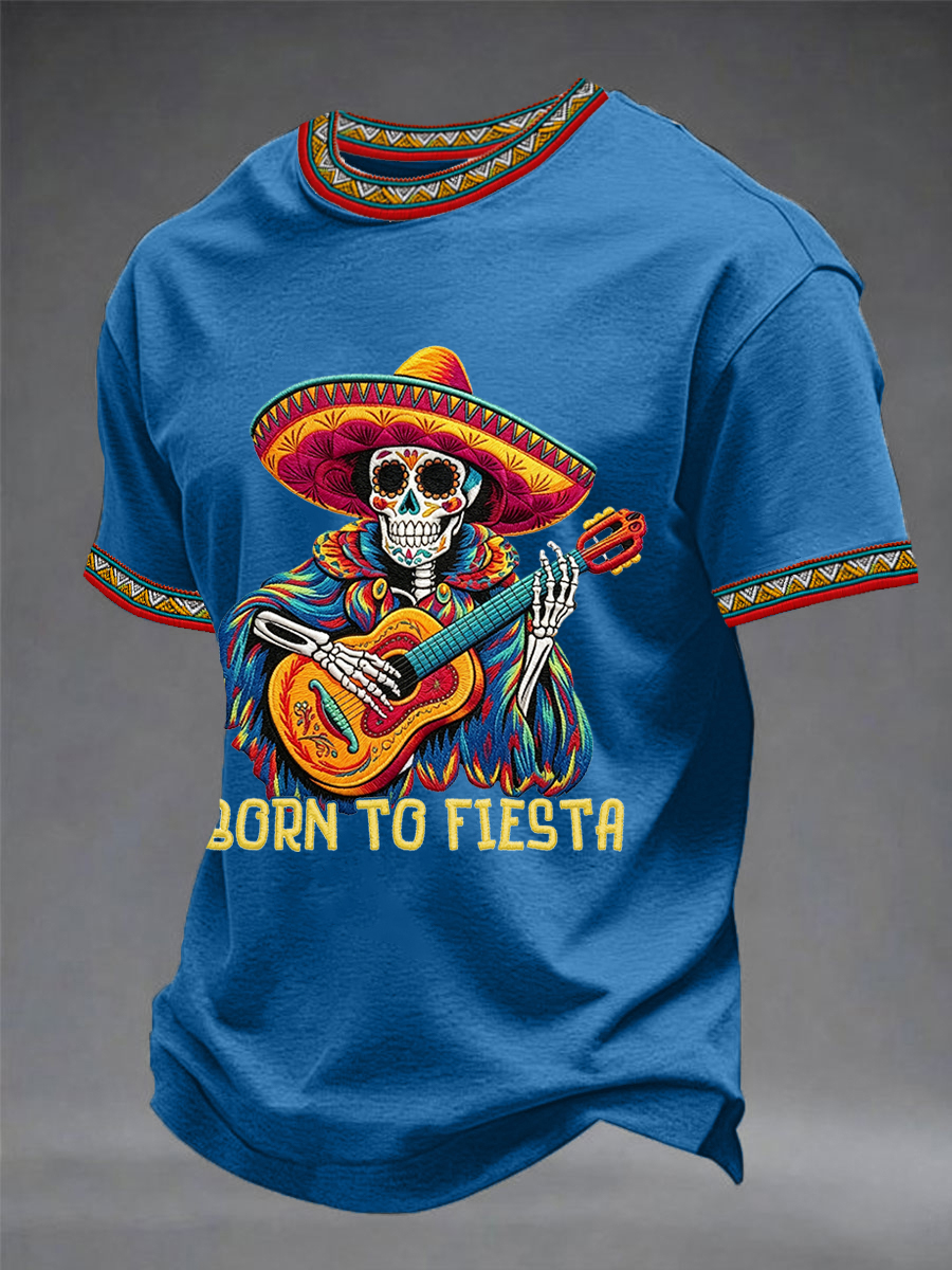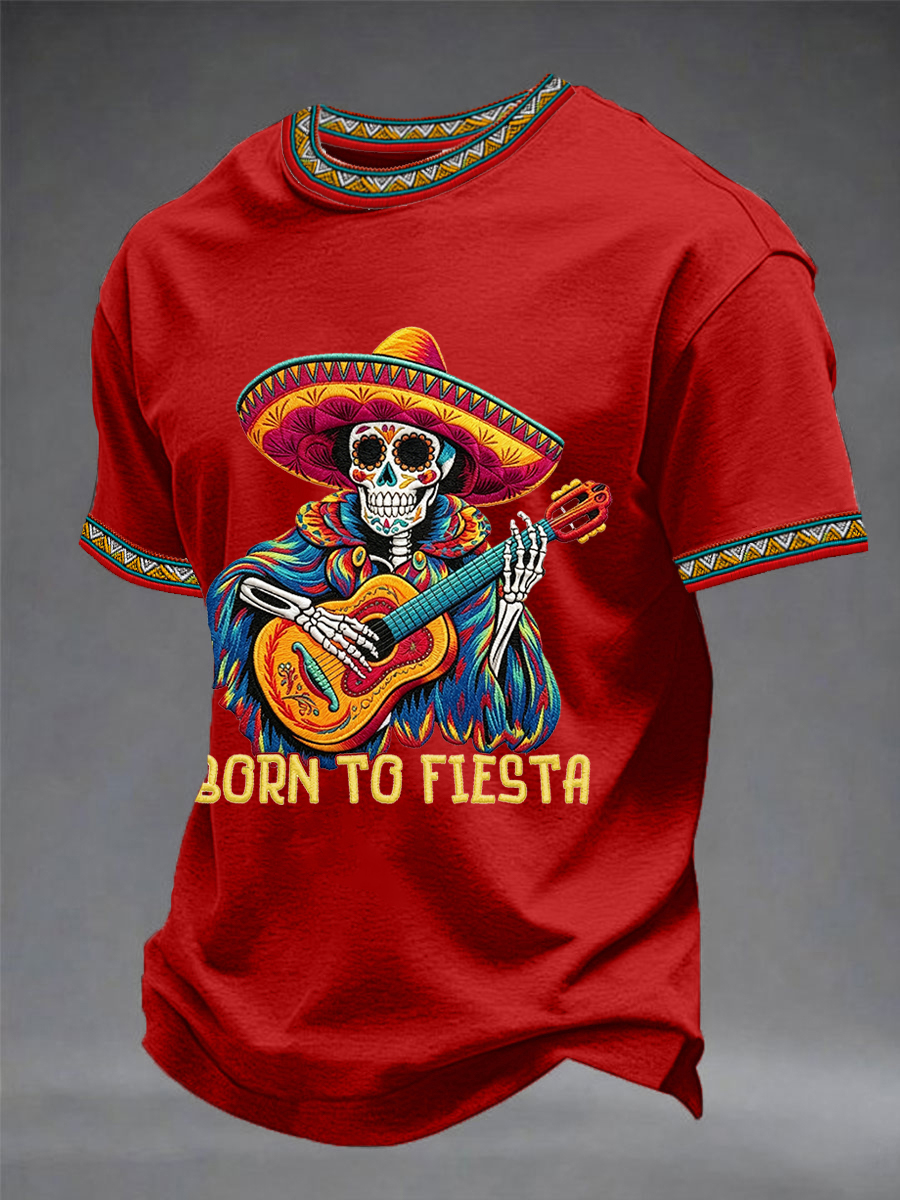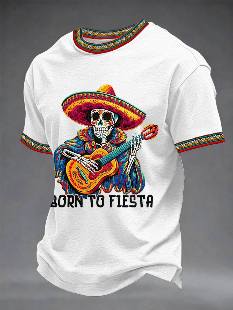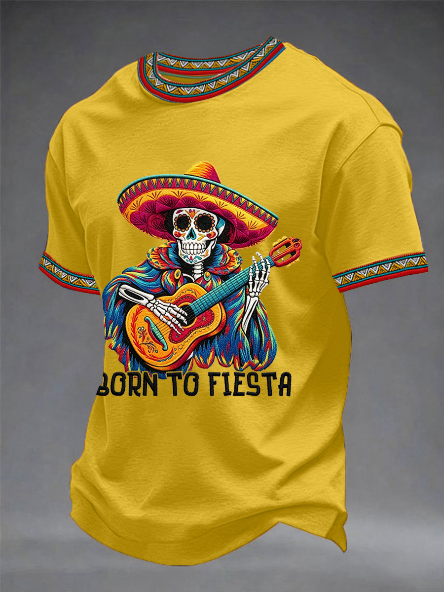 Men's Born To Fiesta Skeleton Print Casual Tee