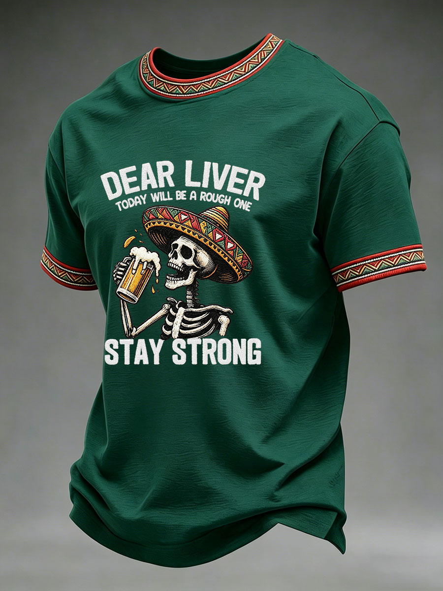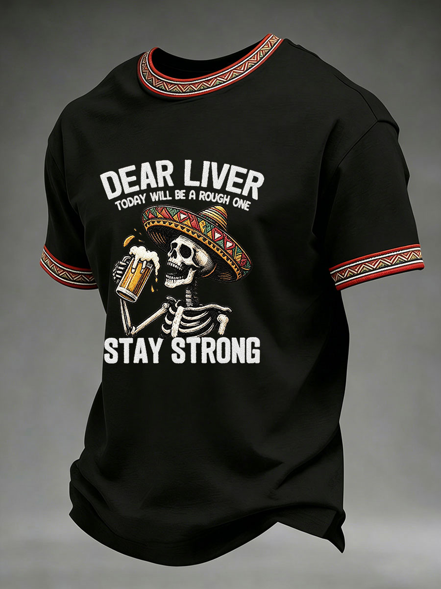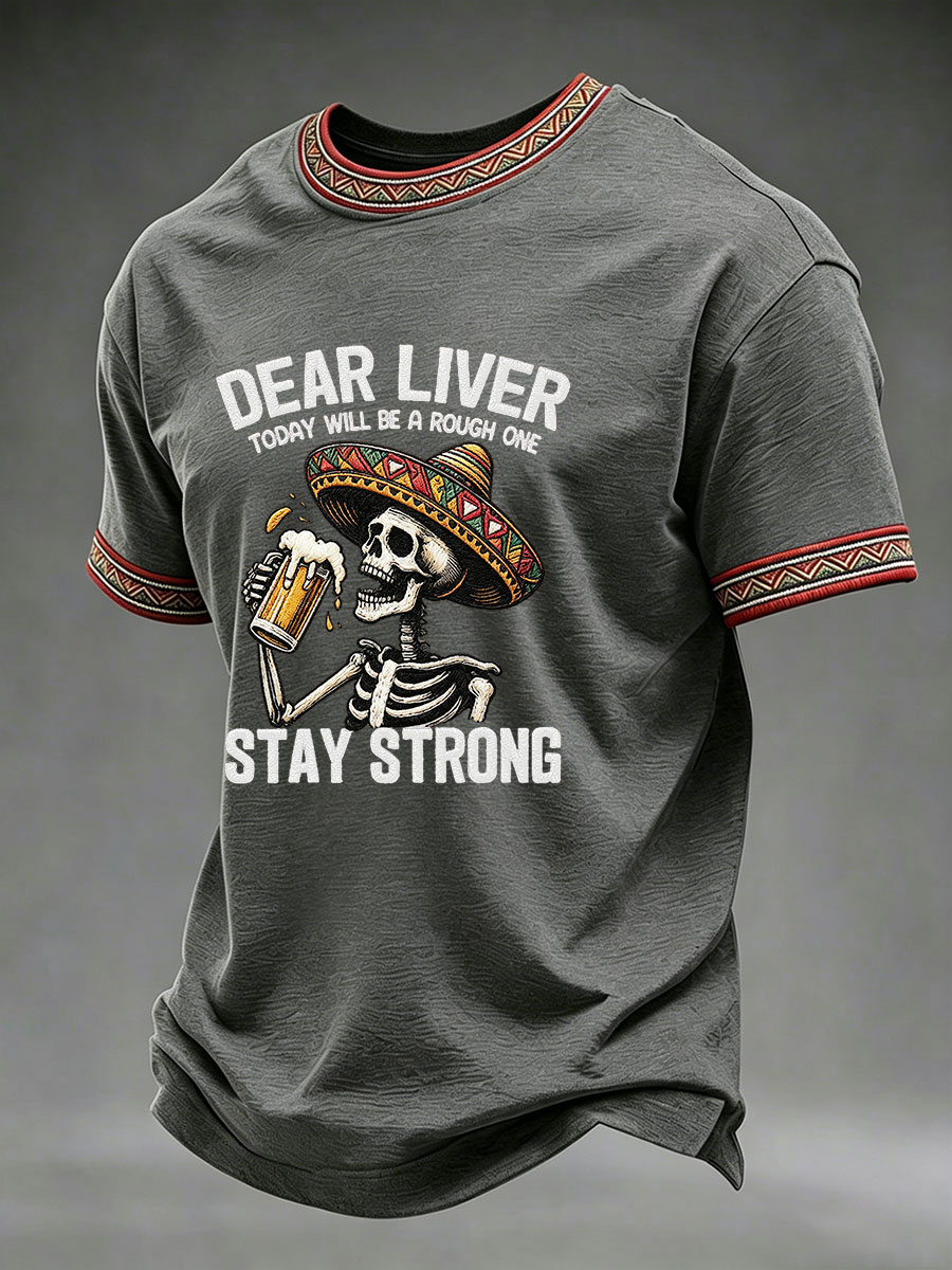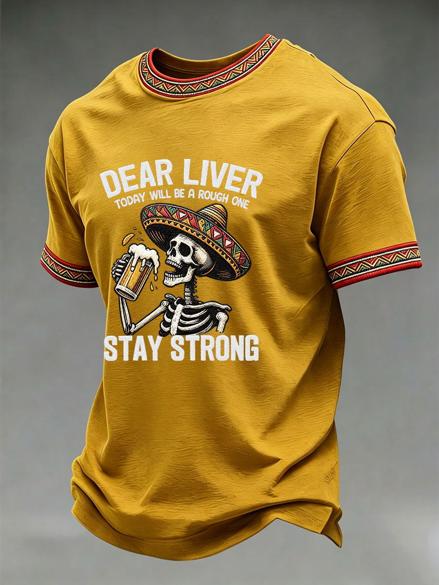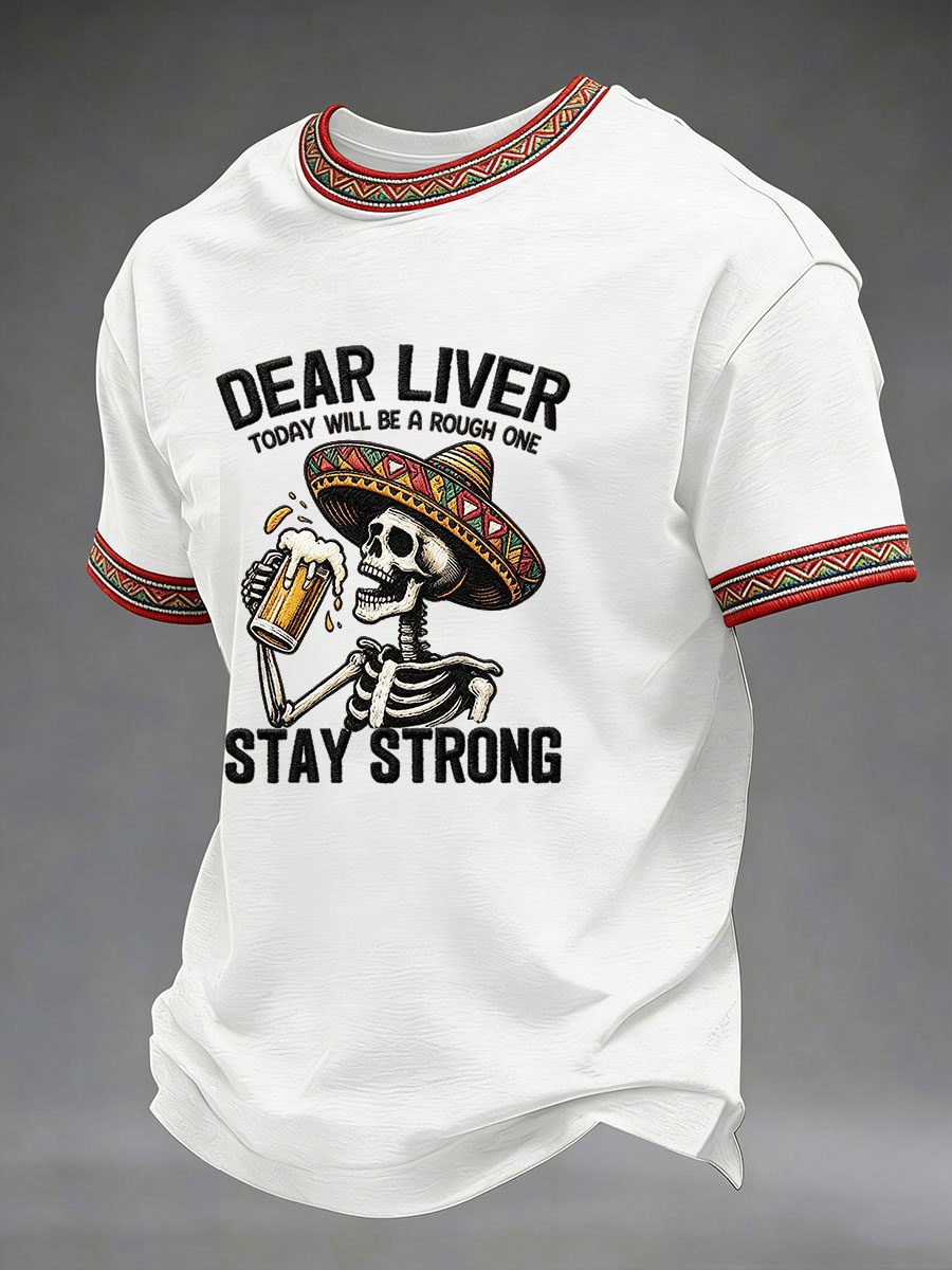 Men's Born To Fiesta Skeleton Print Casual Tee