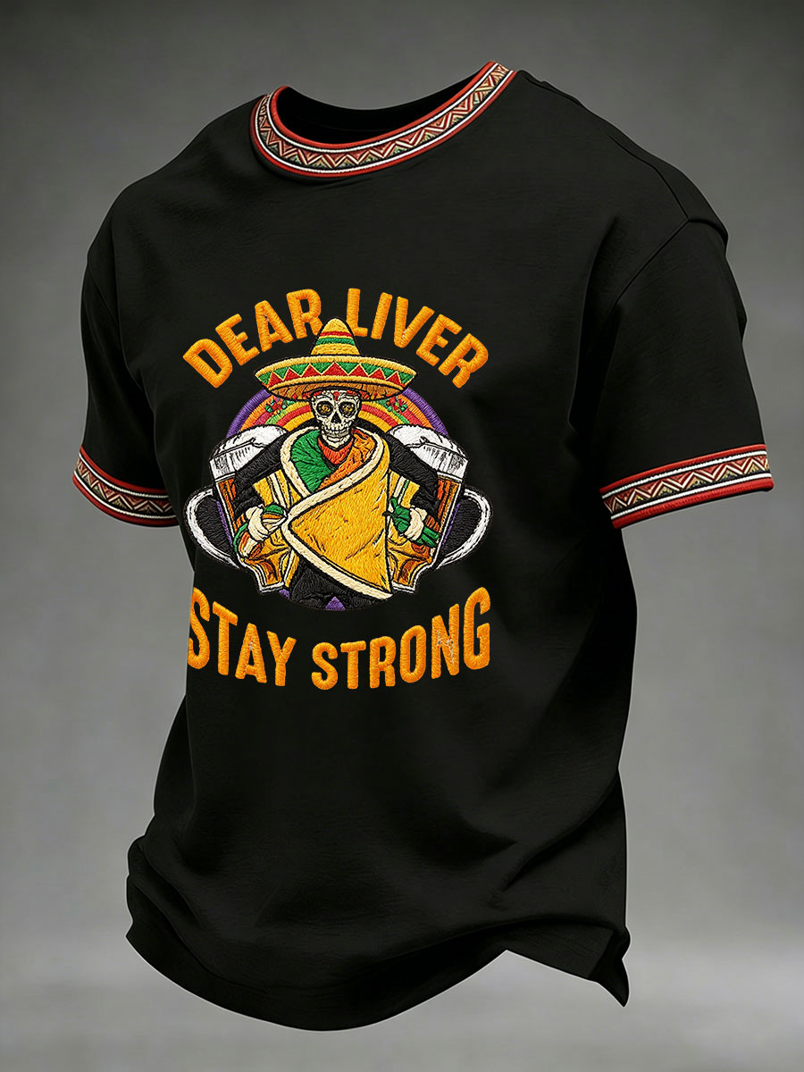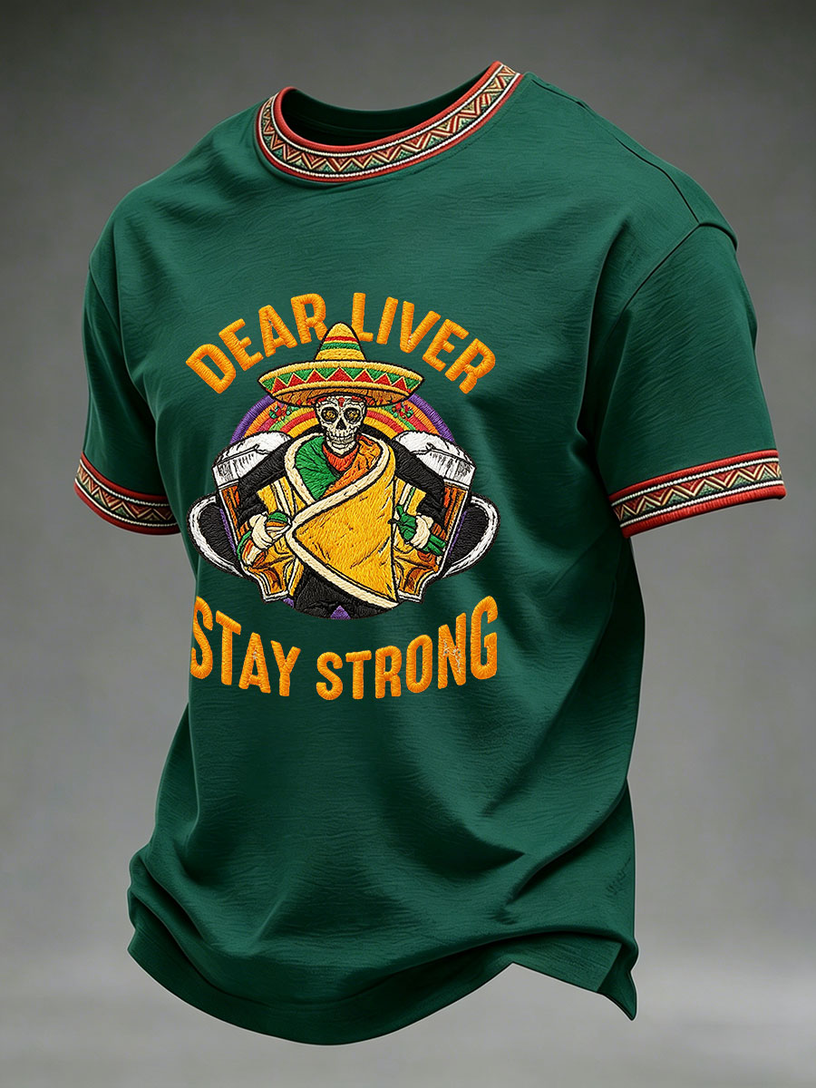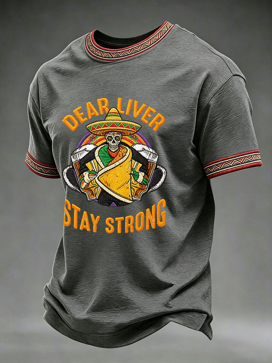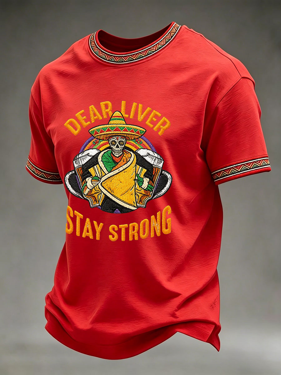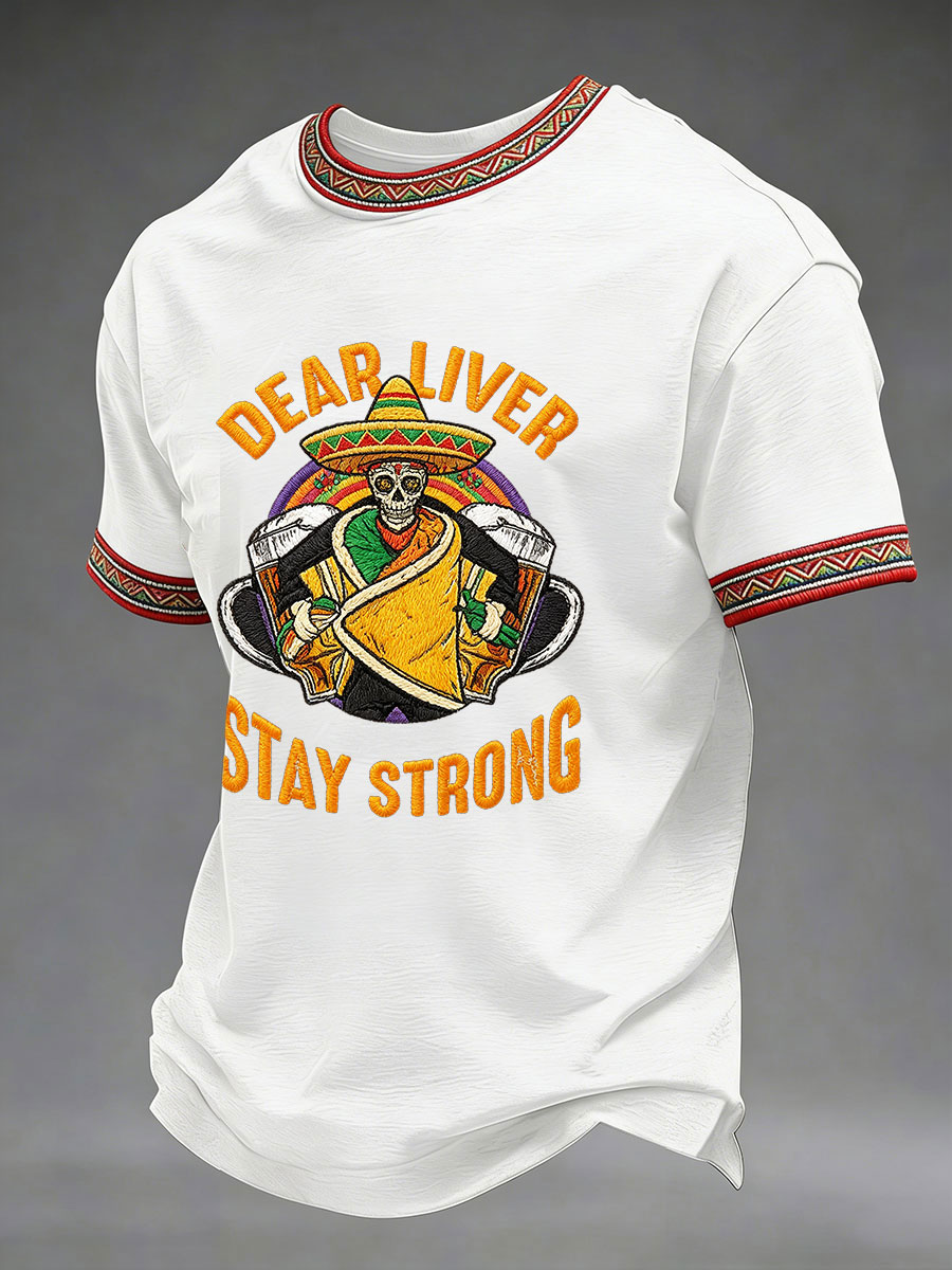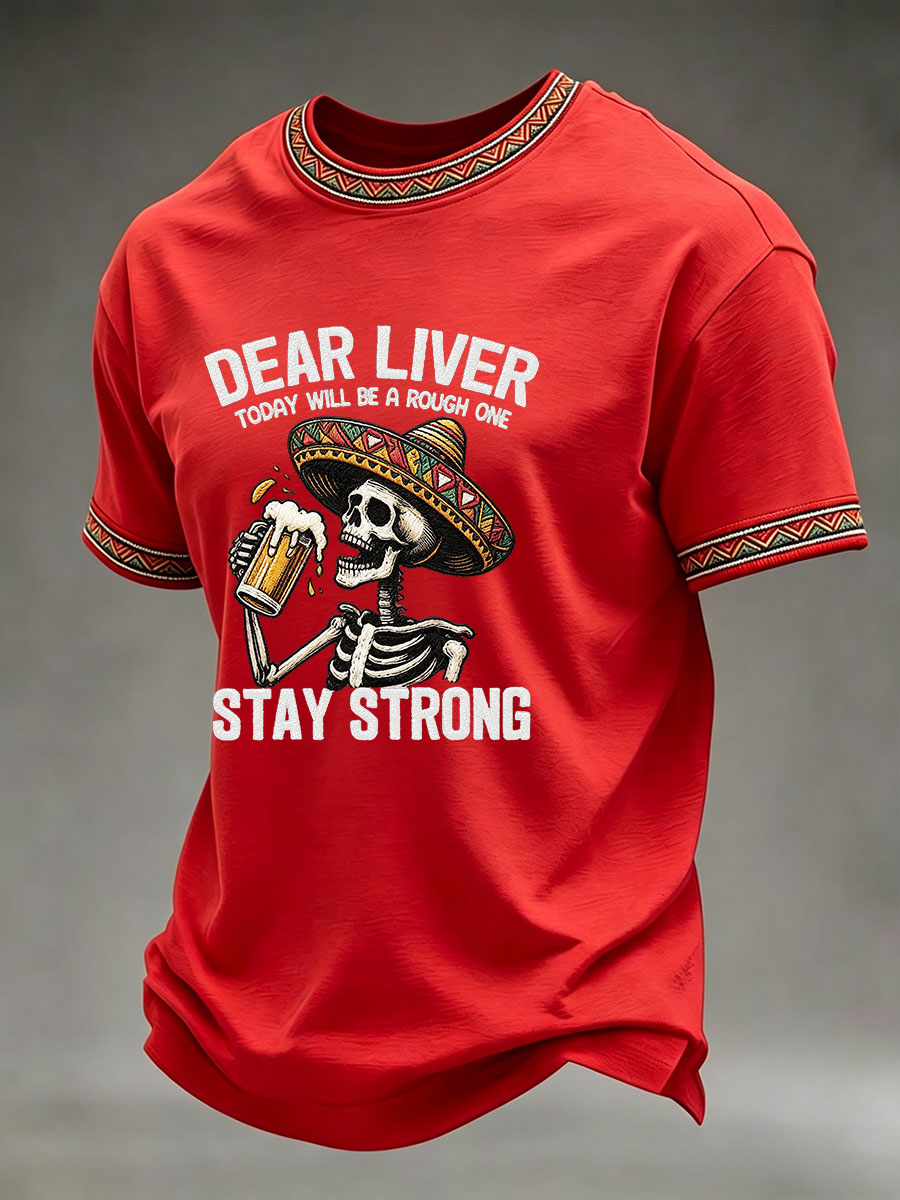 Men's Born To Fiesta Skeleton Print Casual Tee
