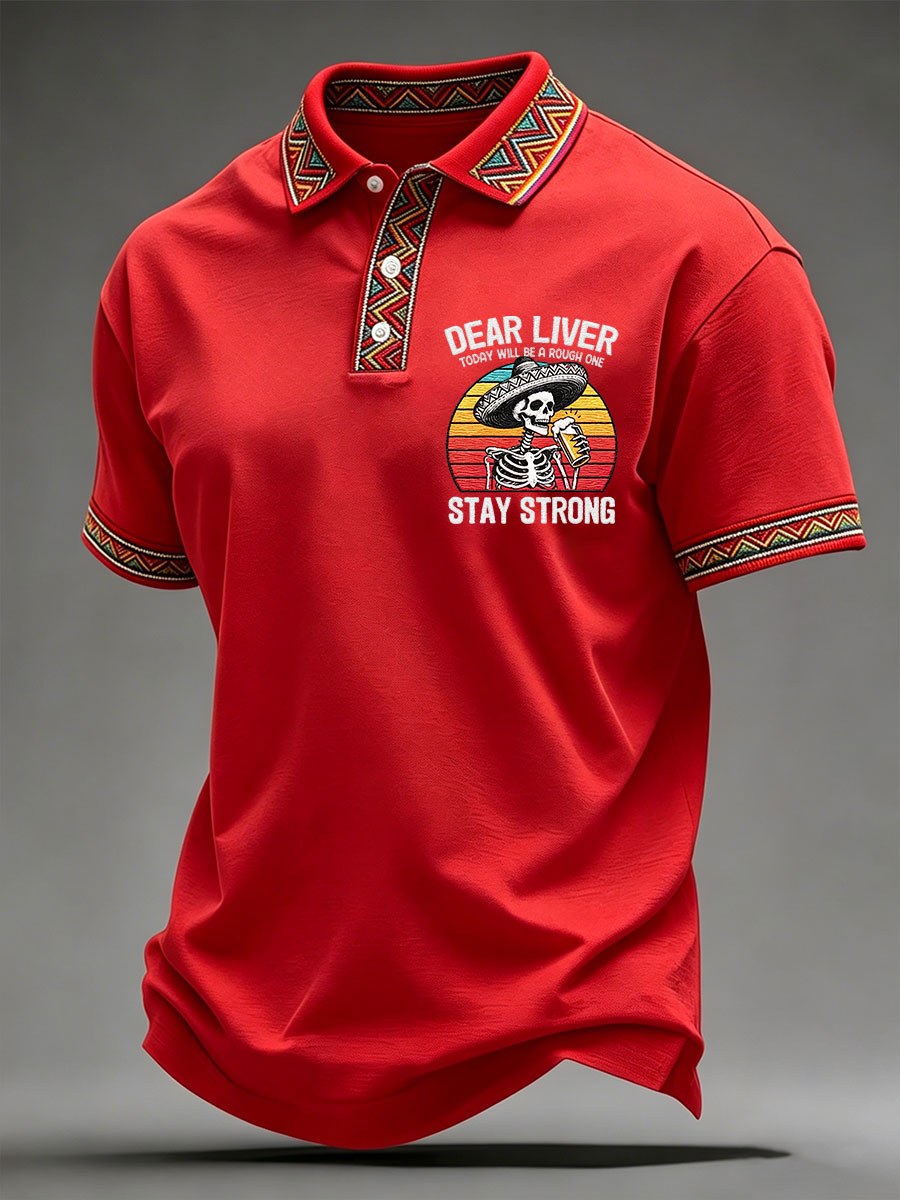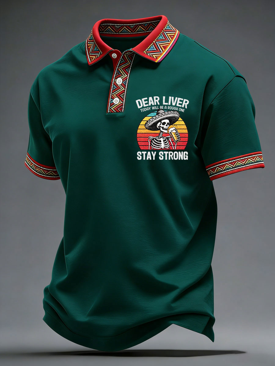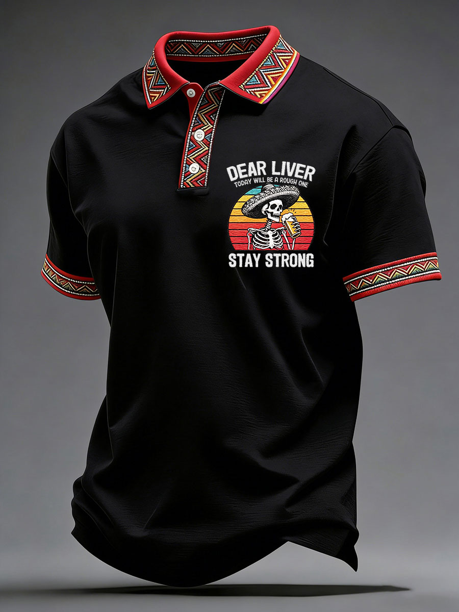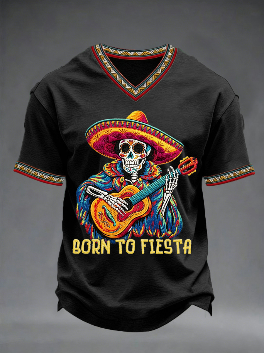 Men's Born To Fiesta Skeleton Print Casual V-Neack Tee