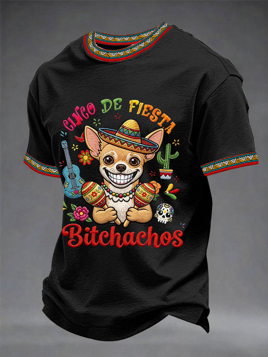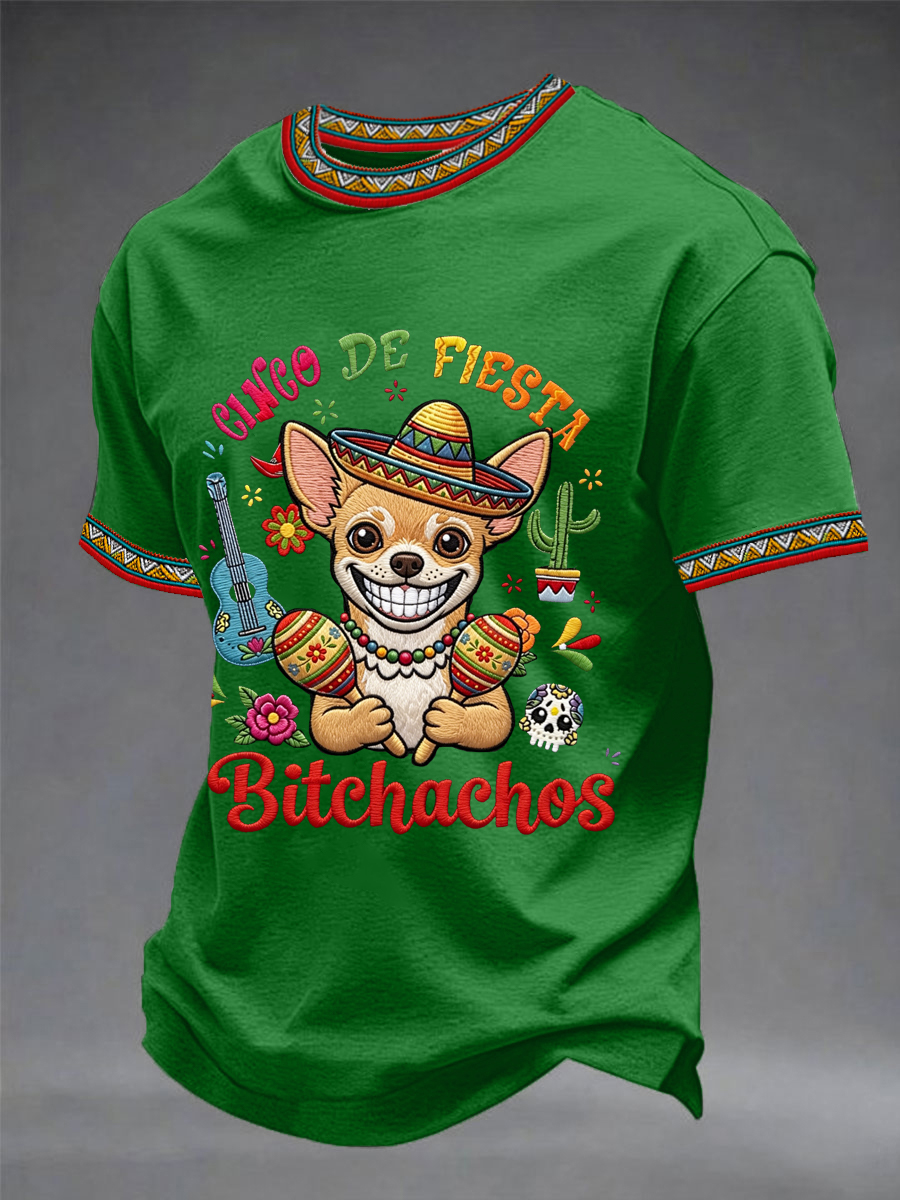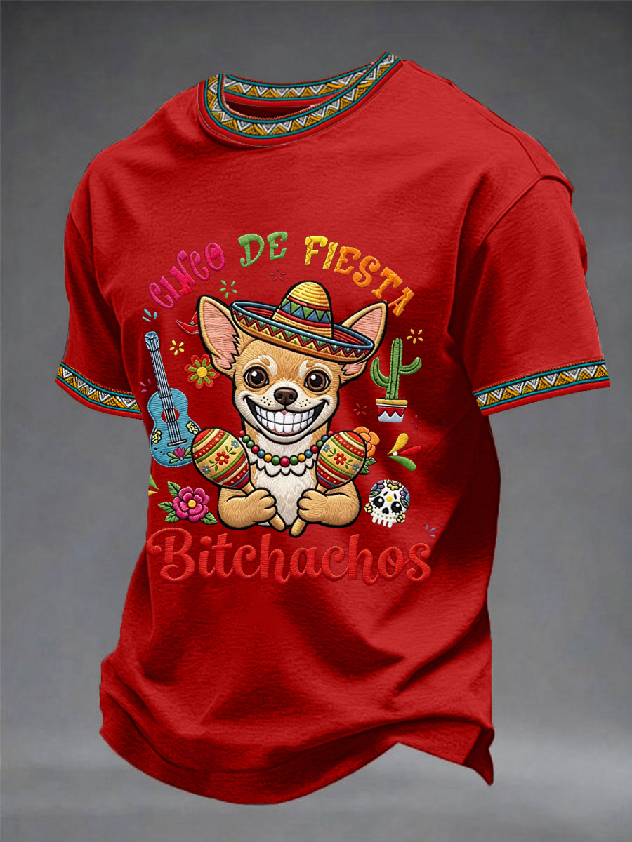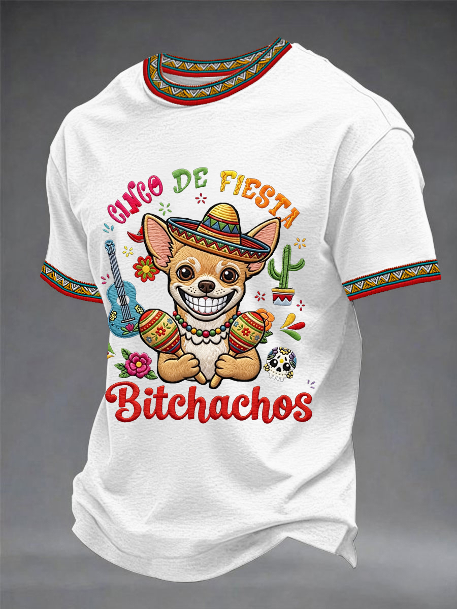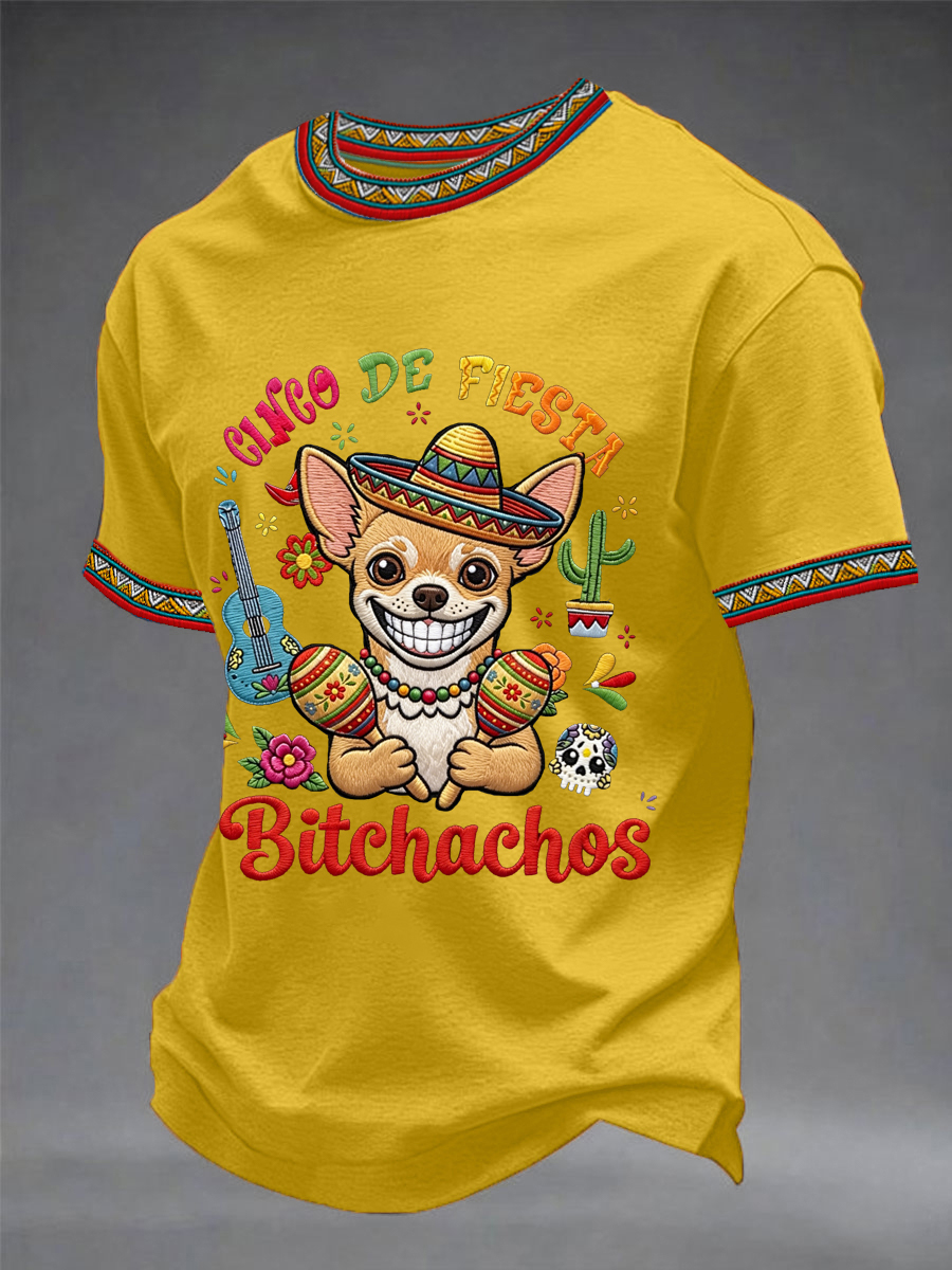 Men's Funny Cinco De Fiesta Bitchachos Dog Print Casual Tee