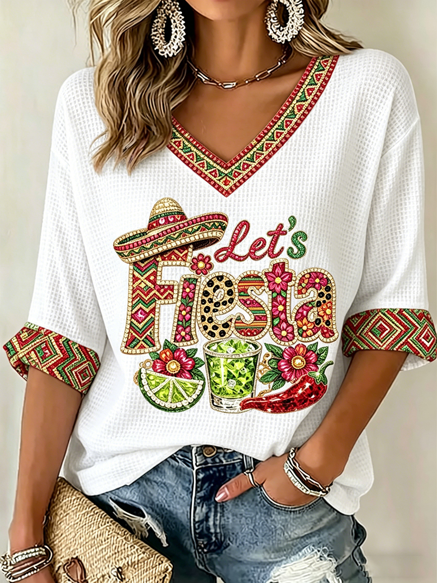Women's Cinco De Mayo Print Waffle T-shirt