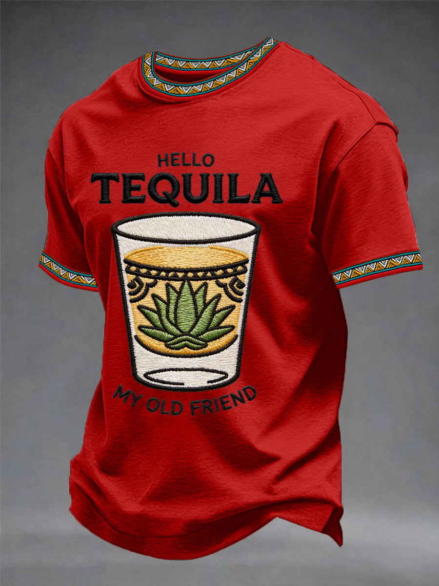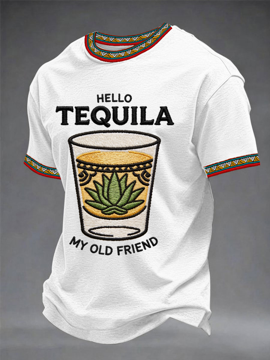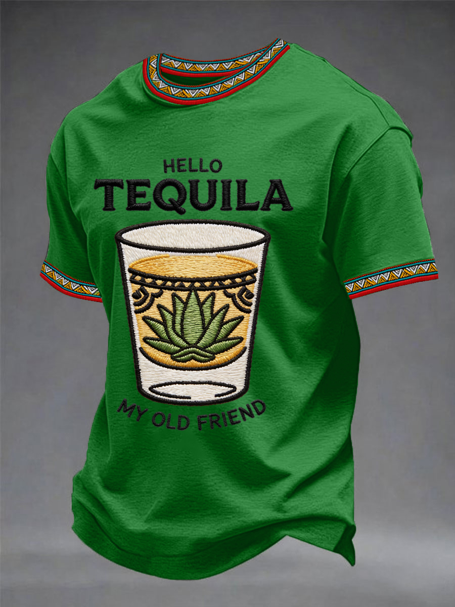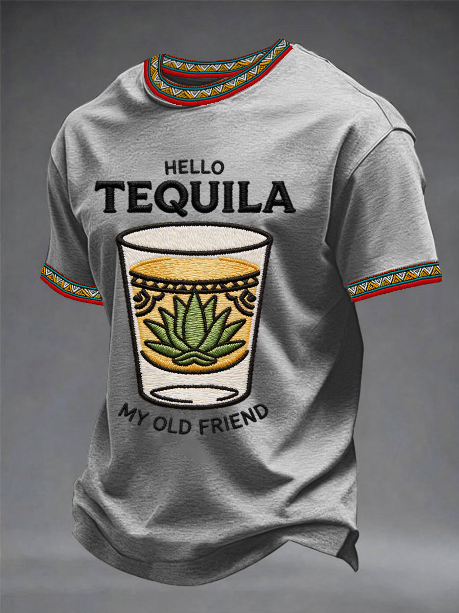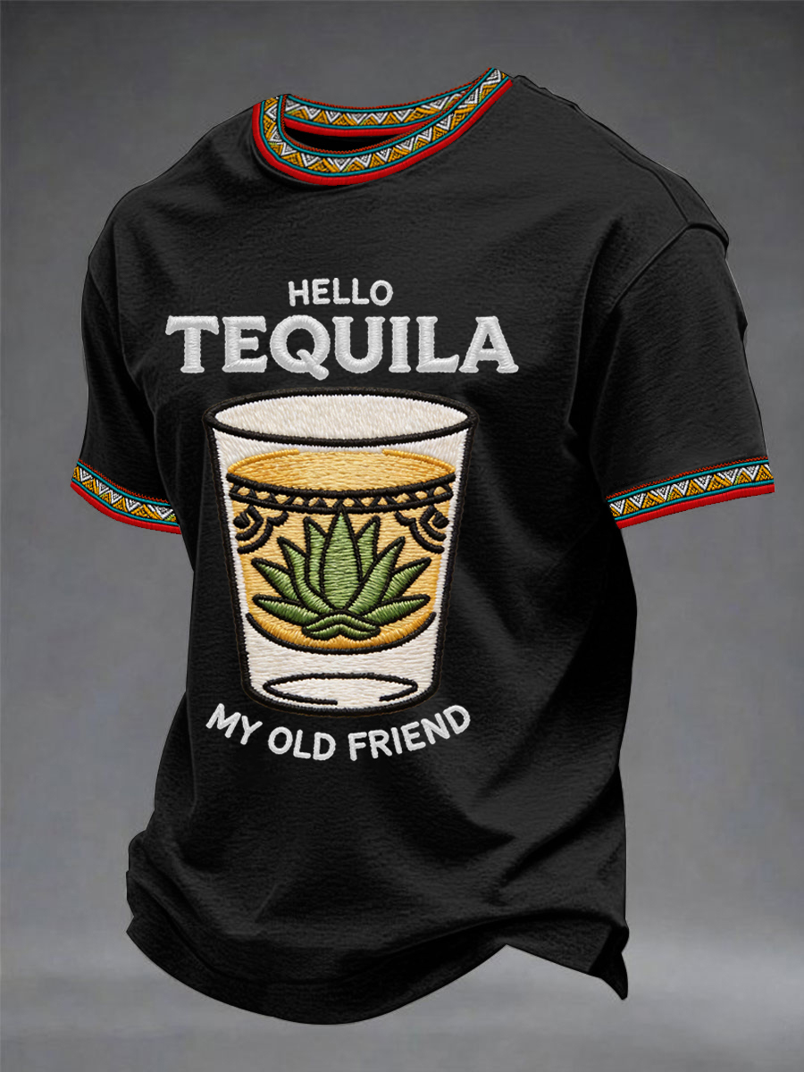 Men's Funny HELLO TEQUILA MY OLD FRIEND Cinco De Mayo Print Casual Tee