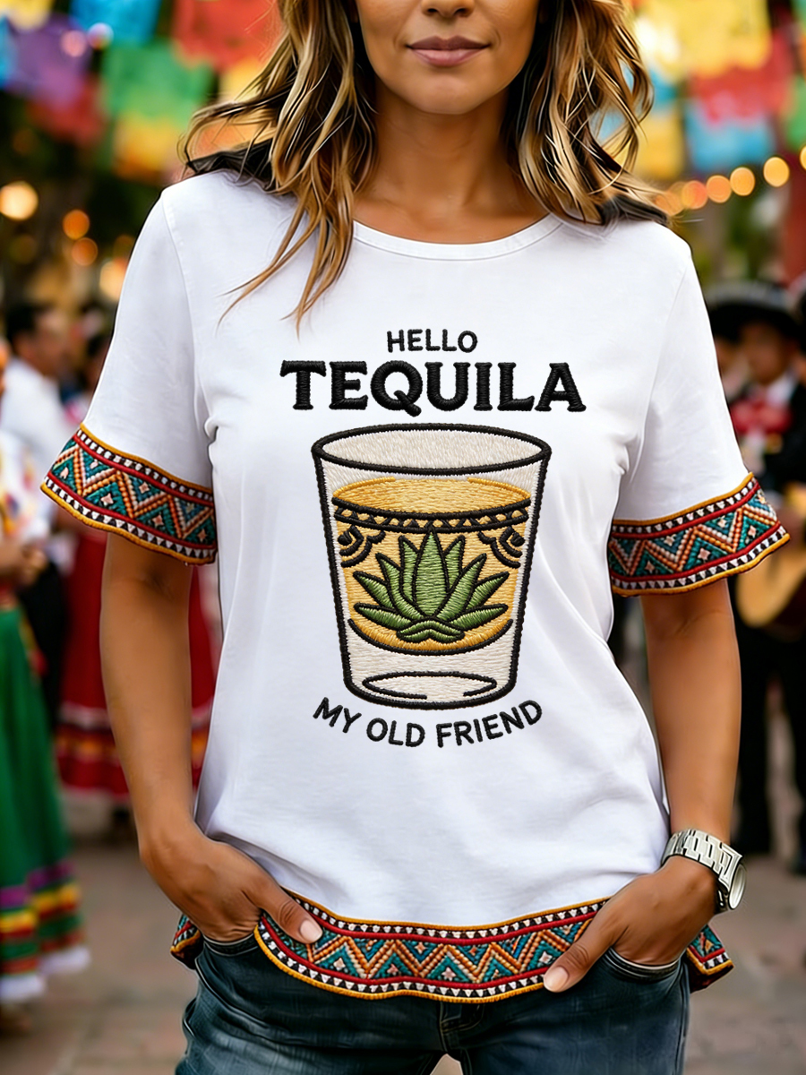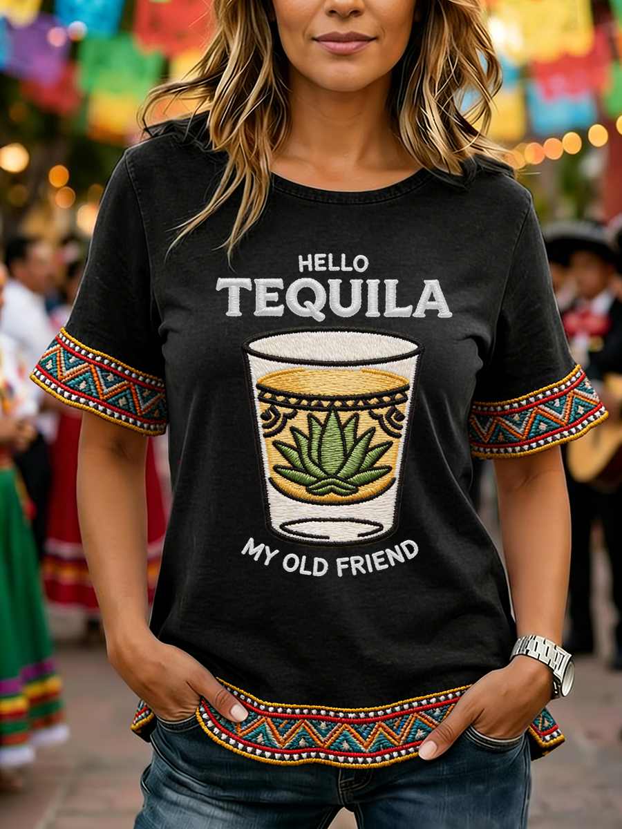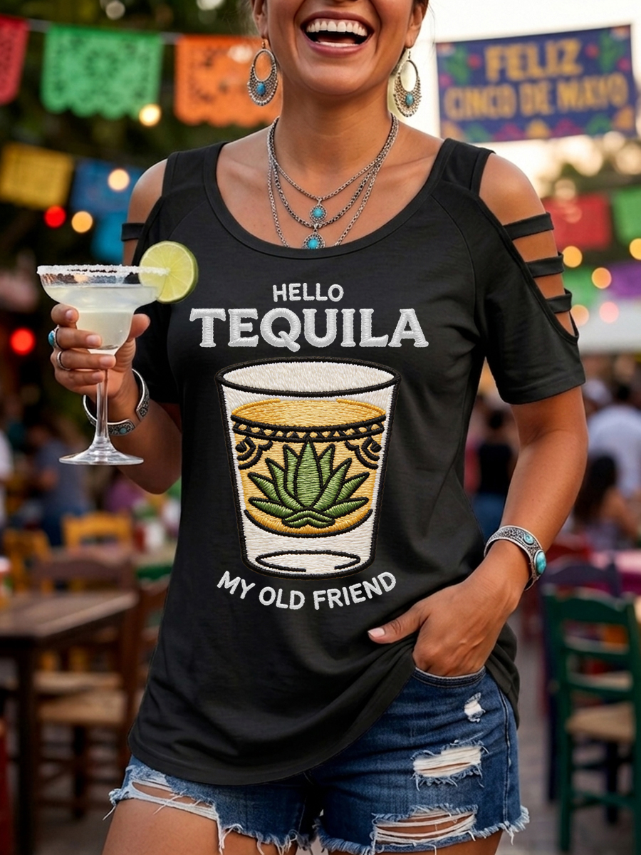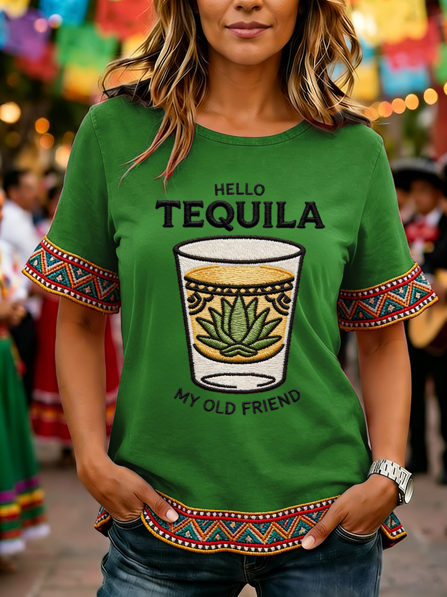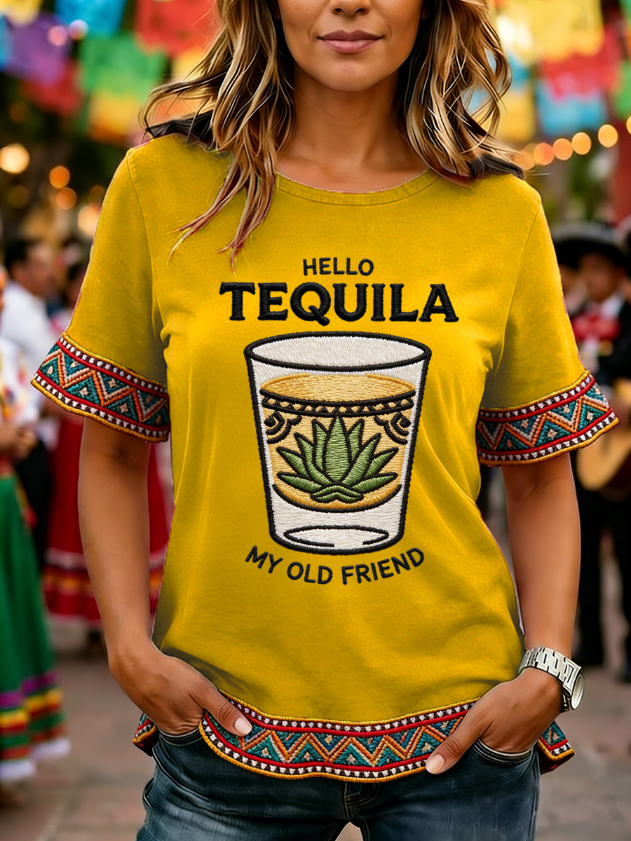 Women's Funny HELLO TEQUILA MY OLD FRIEND Cinco De Mayo Print Casual Top