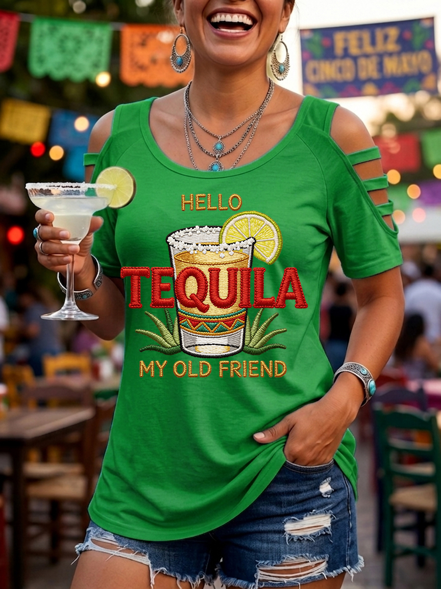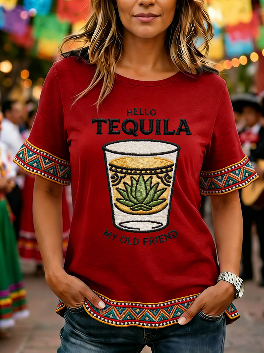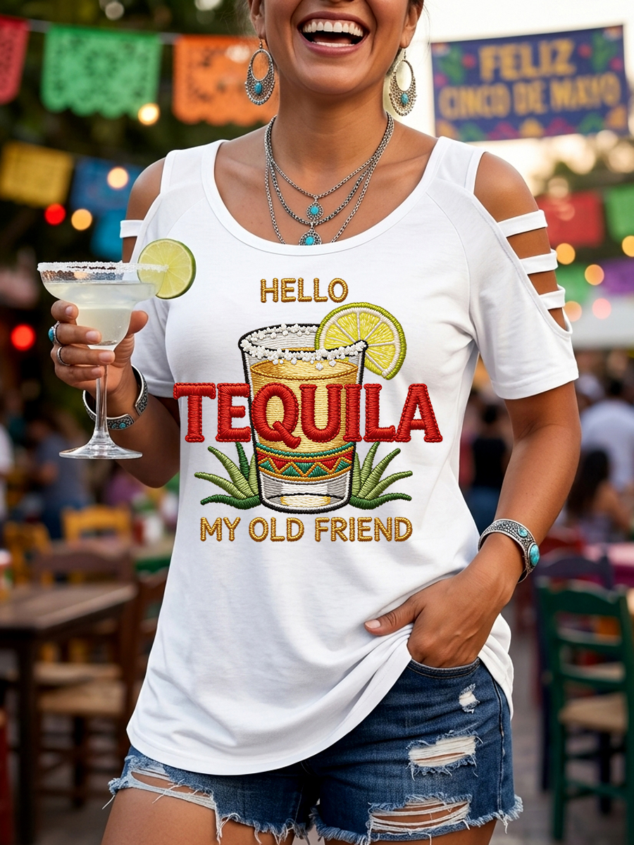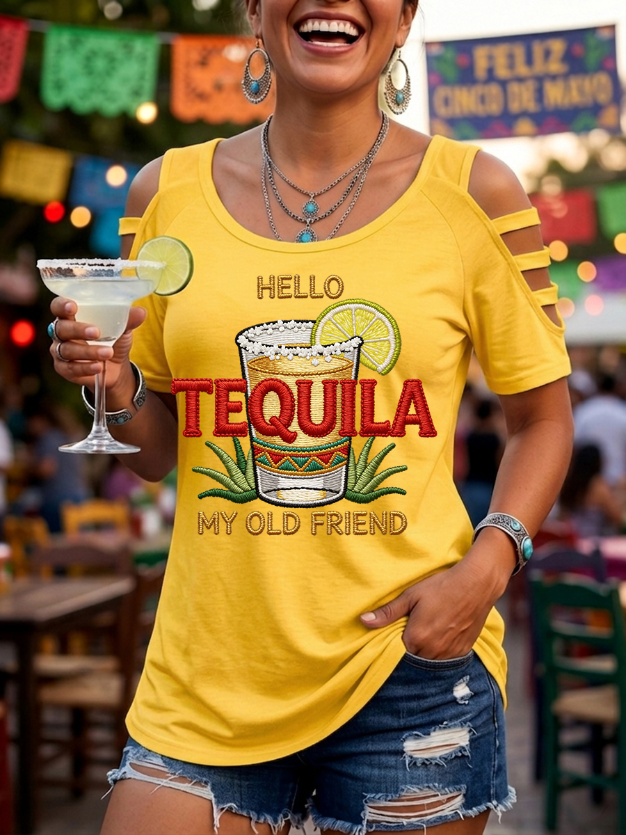 Women's Funny HELLO TEQUILA MY OLD FRIEND Cinco De Mayo Print Casual Top