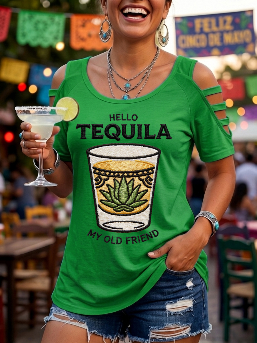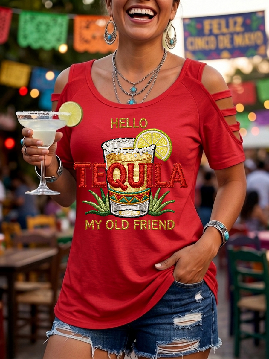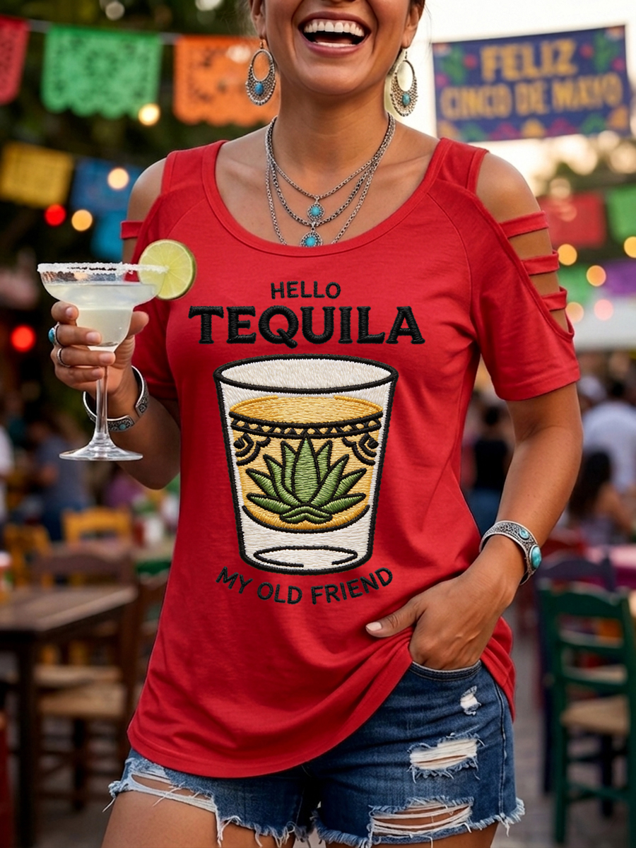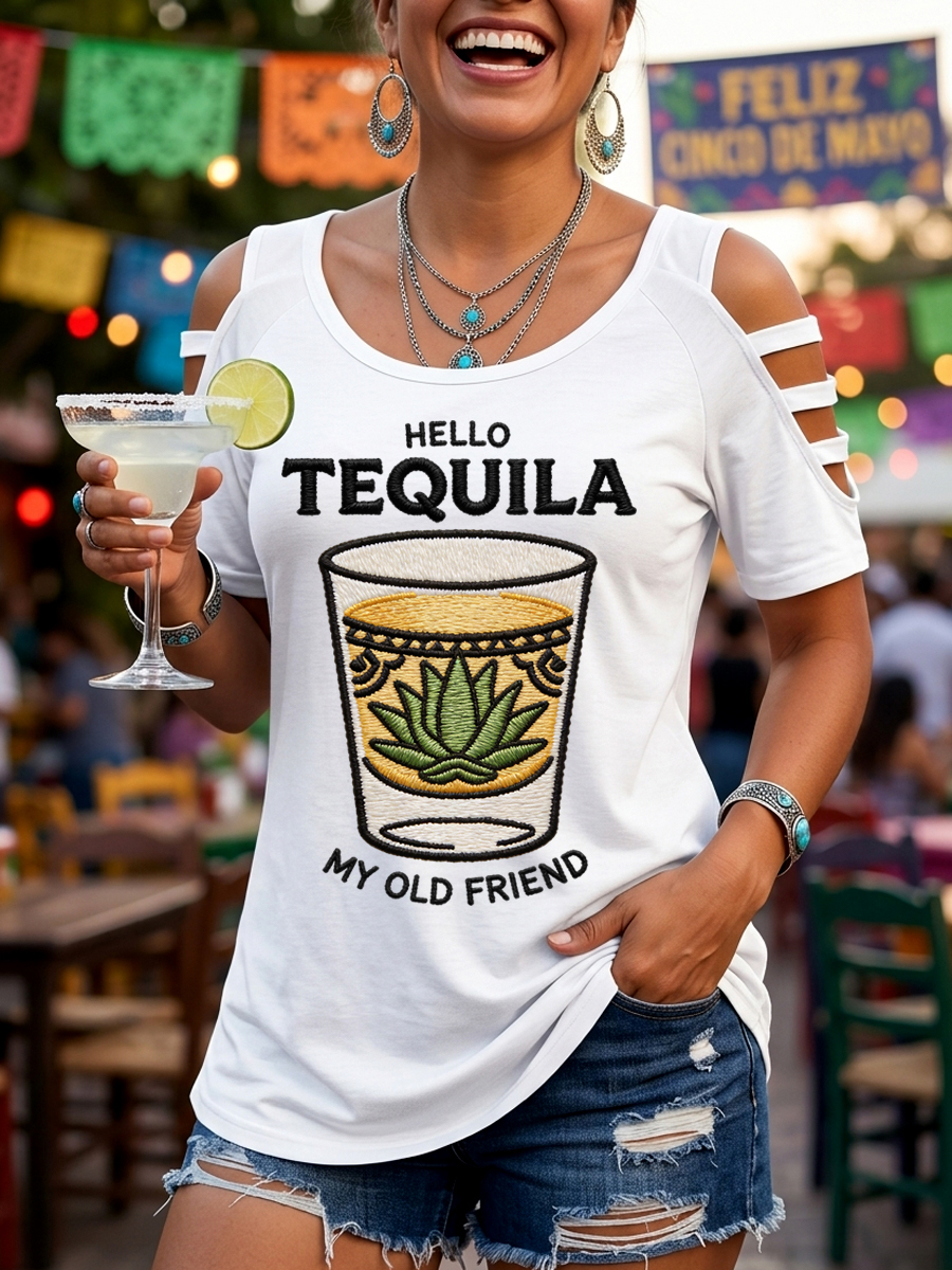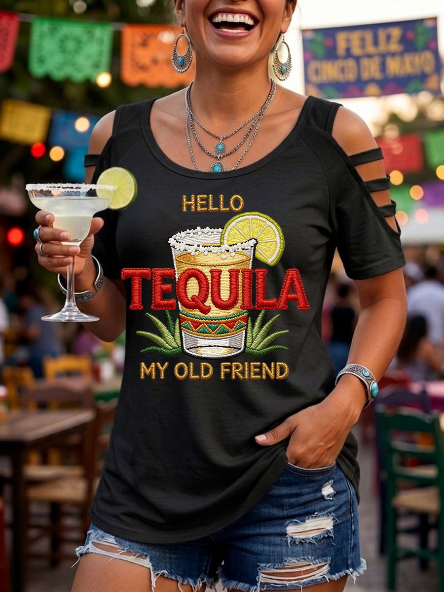 Women's Funny HELLO TEQUILA MY OLD FRIEND Cinco De Mayo Print Casual Top