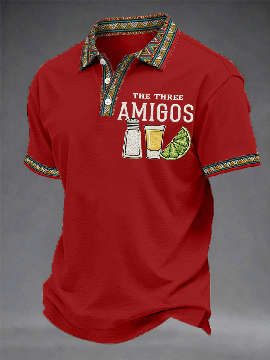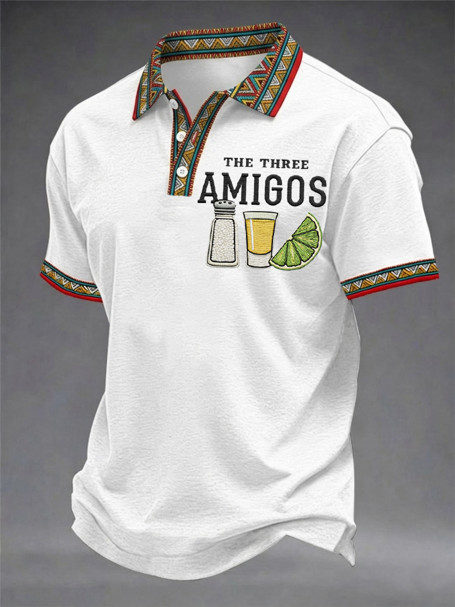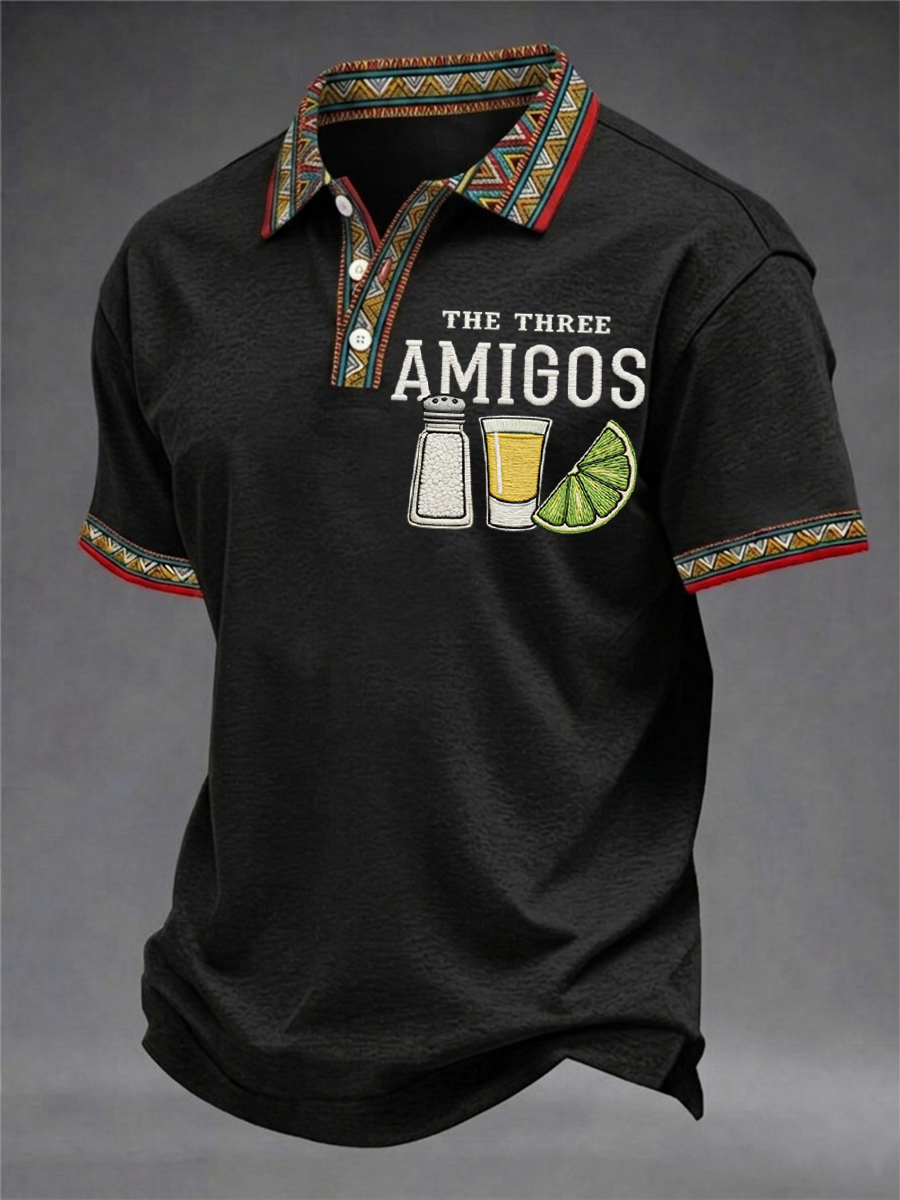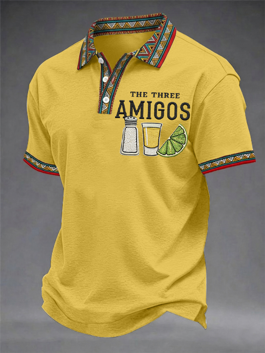 Men's Funny Cinco de Mayo The Three Amigos Salt Tequila Lemon Print Casual Polo
