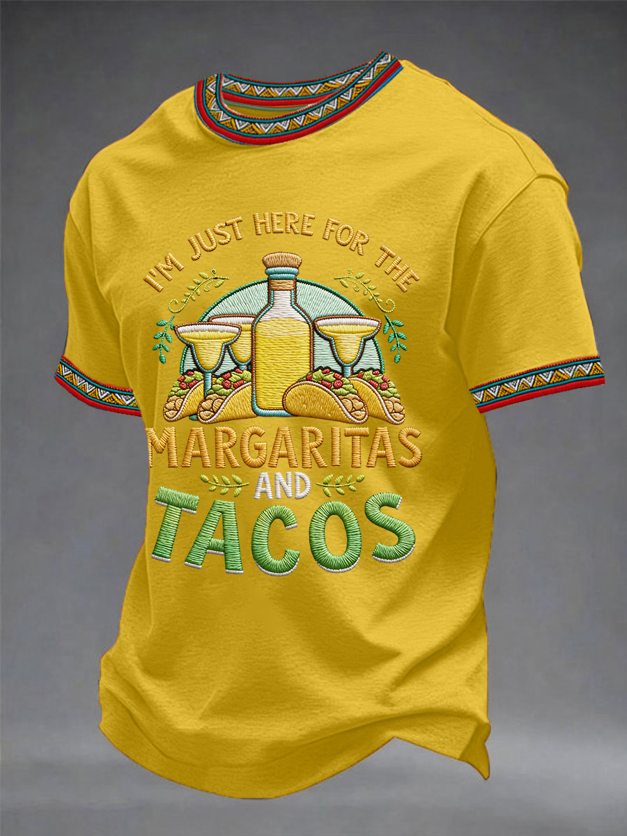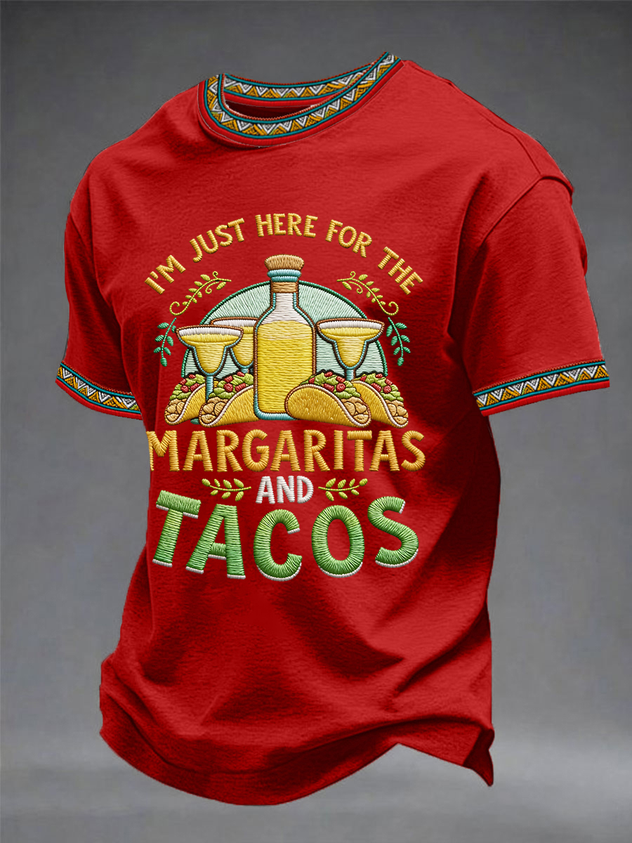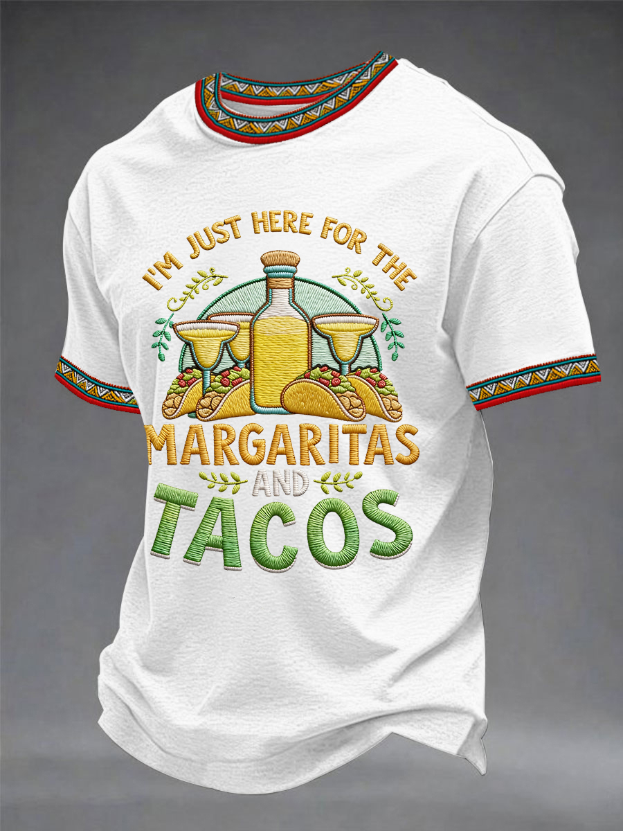 Men's Funny I'm Just Here For The Margaritas And Tacos Print Casual Tee