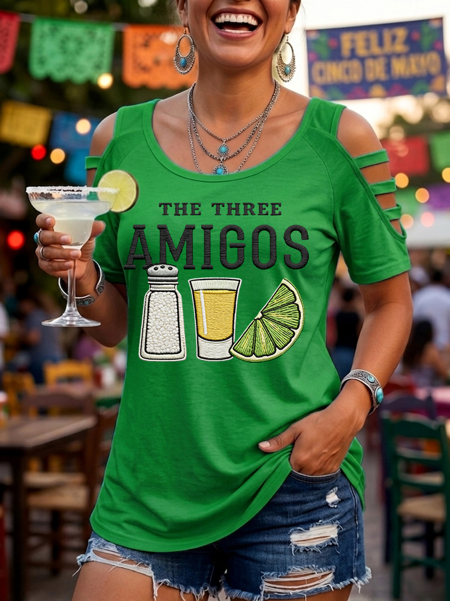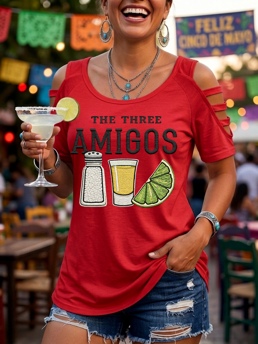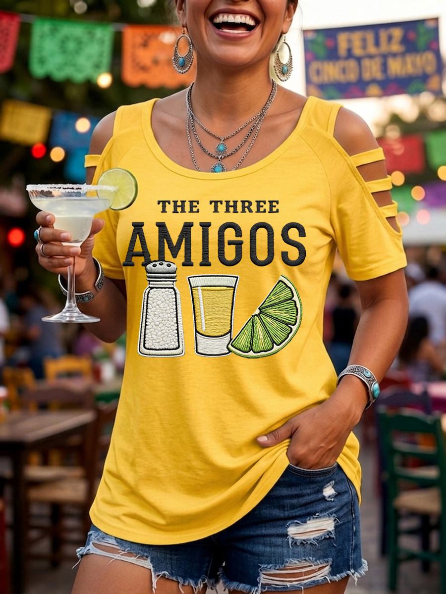 Women's Funny Cinco de Mayo The Three Amigos Salt Tequila Lemon Print Casual Top