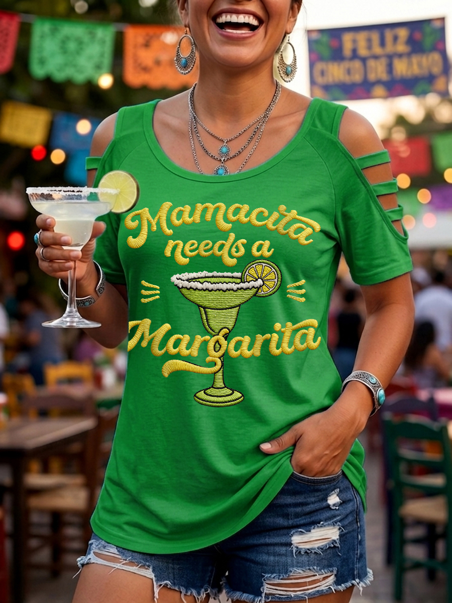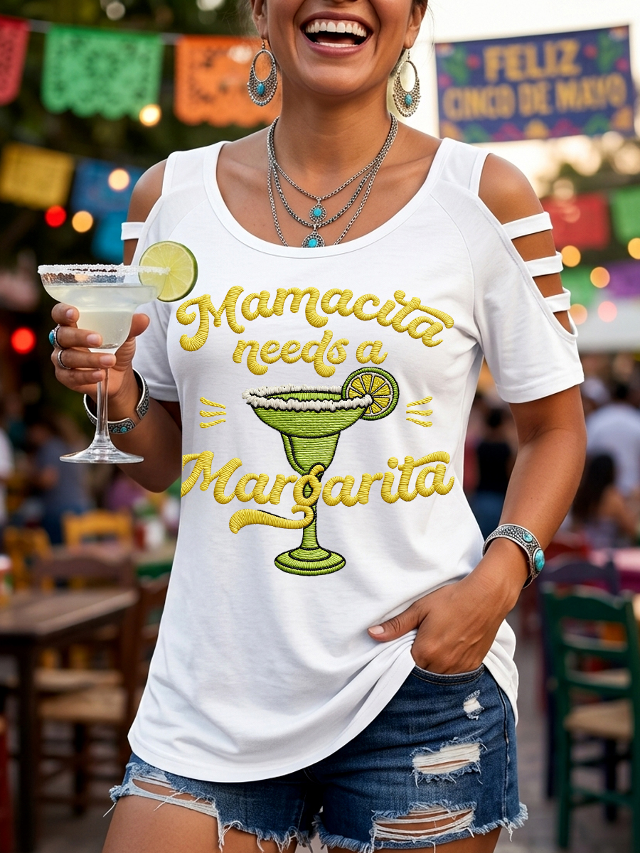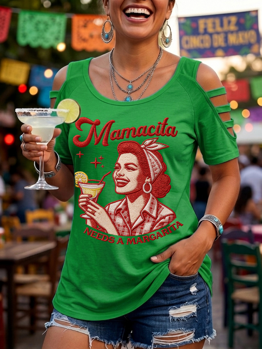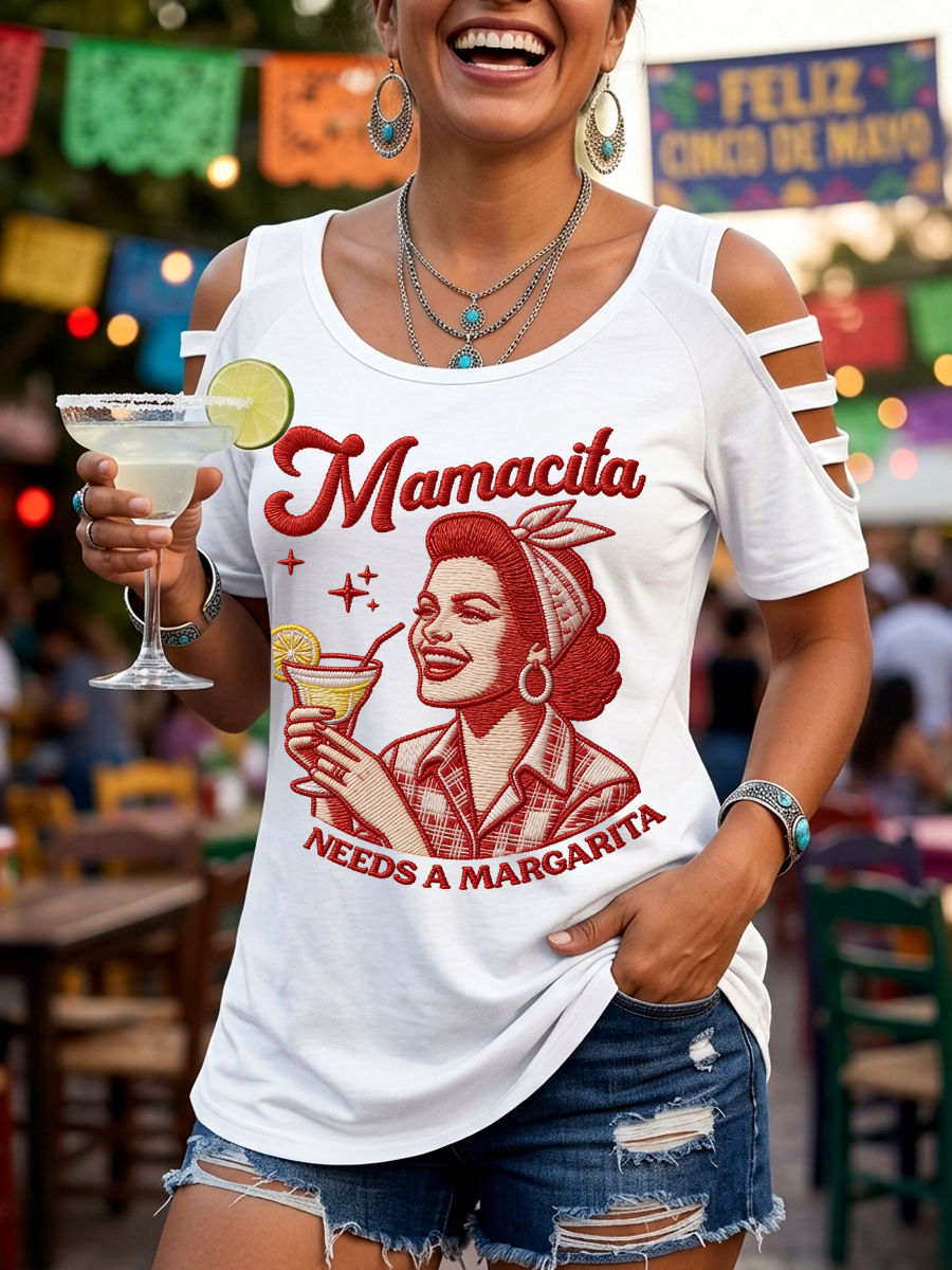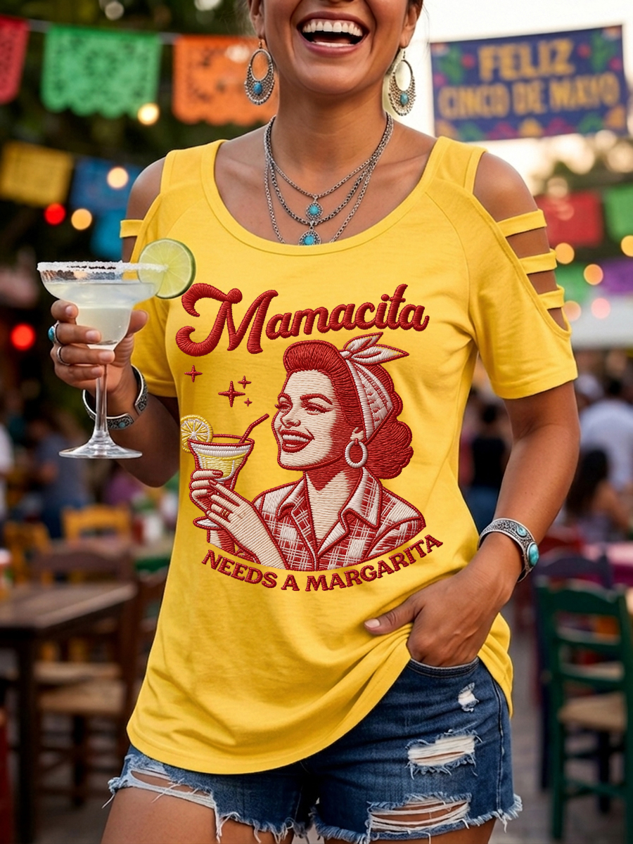 Women's Funny Mamacita Needs A Margarita Print Cinco de Mayo Casual Top