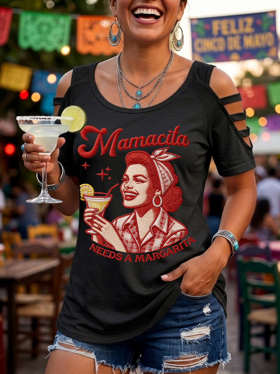 Women's Funny Mamacita Needs A Margarita Cinco de Mayo Print Casual Top
