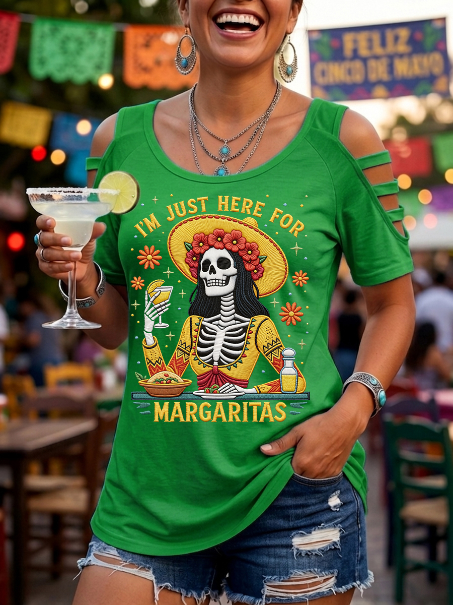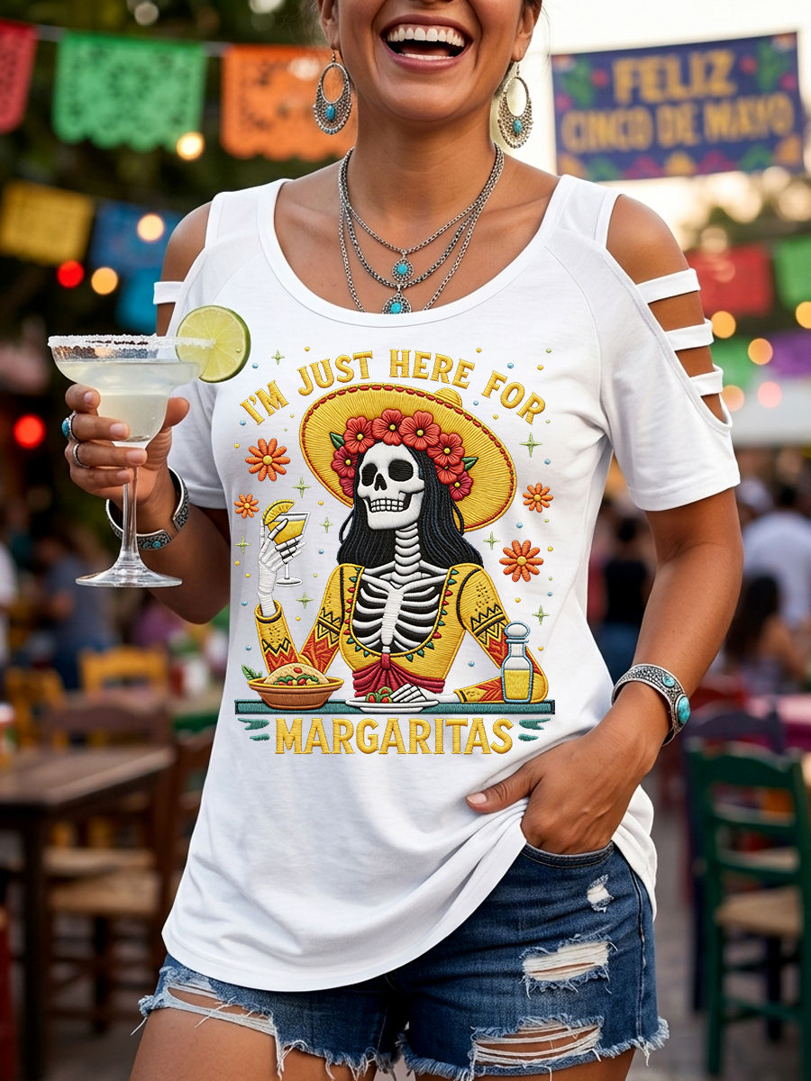 Women's Funny I'm Just Here For The Margaritas Print Casual Top