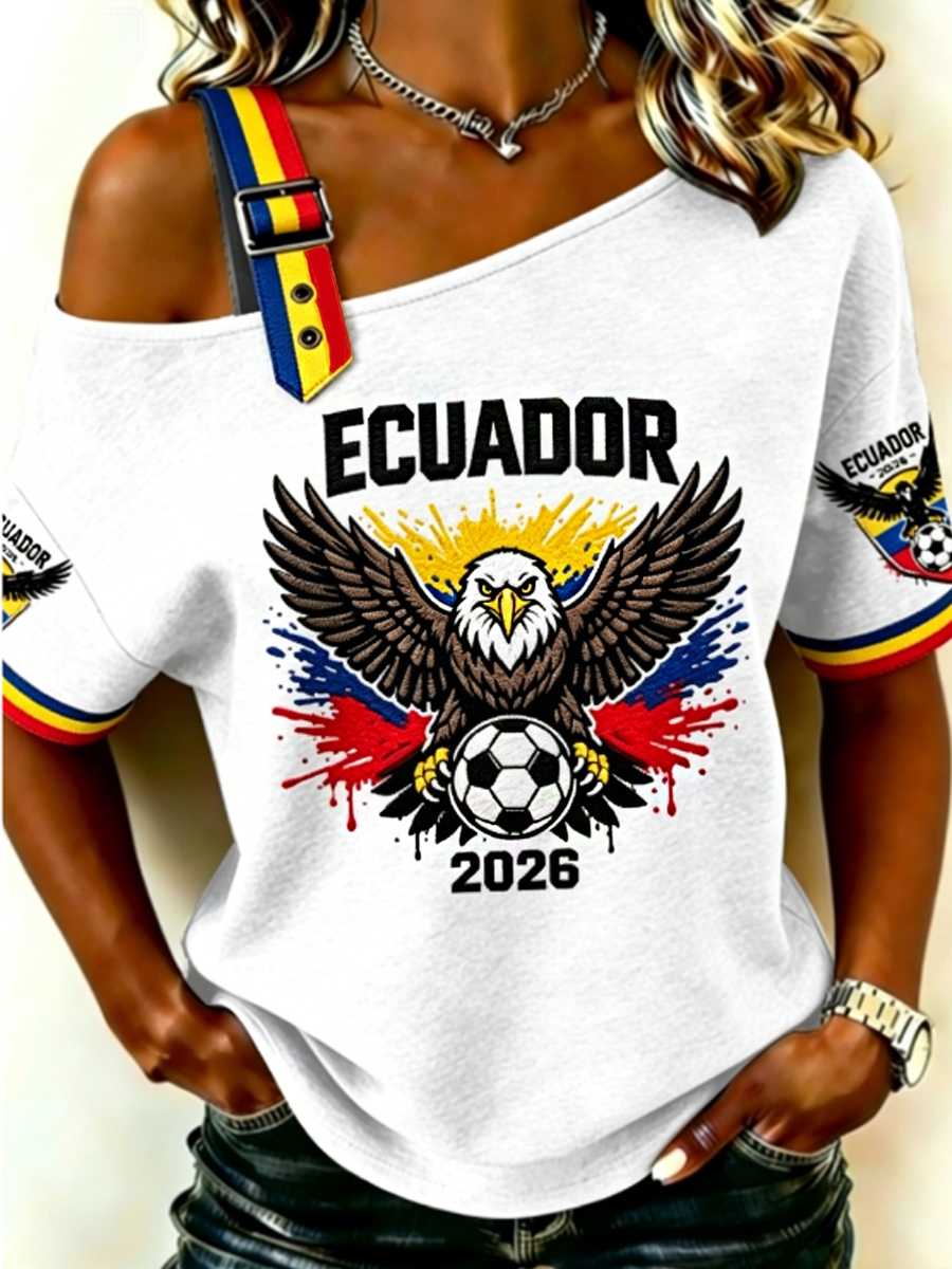 Women's ECUADOR 2026 Football Off-the-Shoulder Short-Sleeve T-Shirt