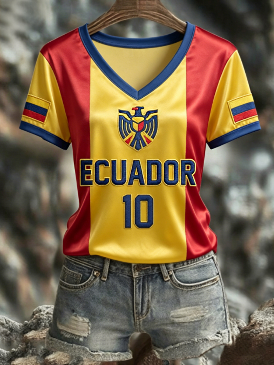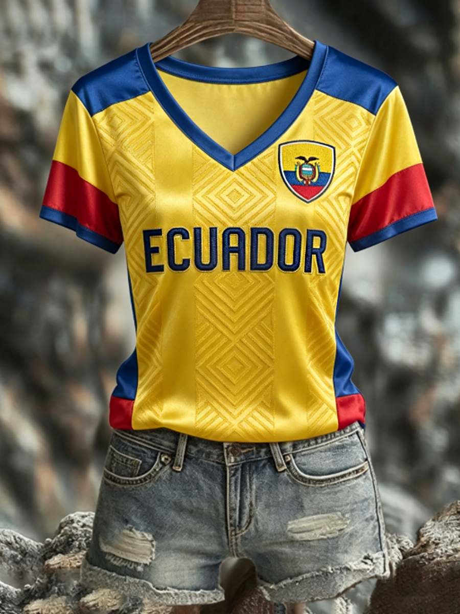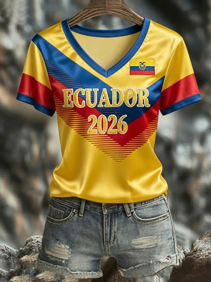 Women's ECUADOR 2026 Football V-Neck Short-Sleeve Silk T-Shirt