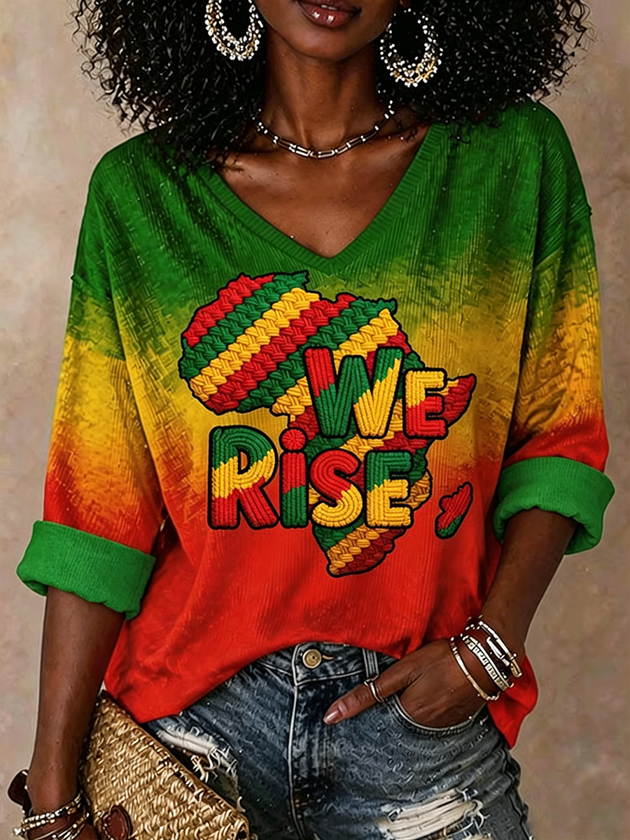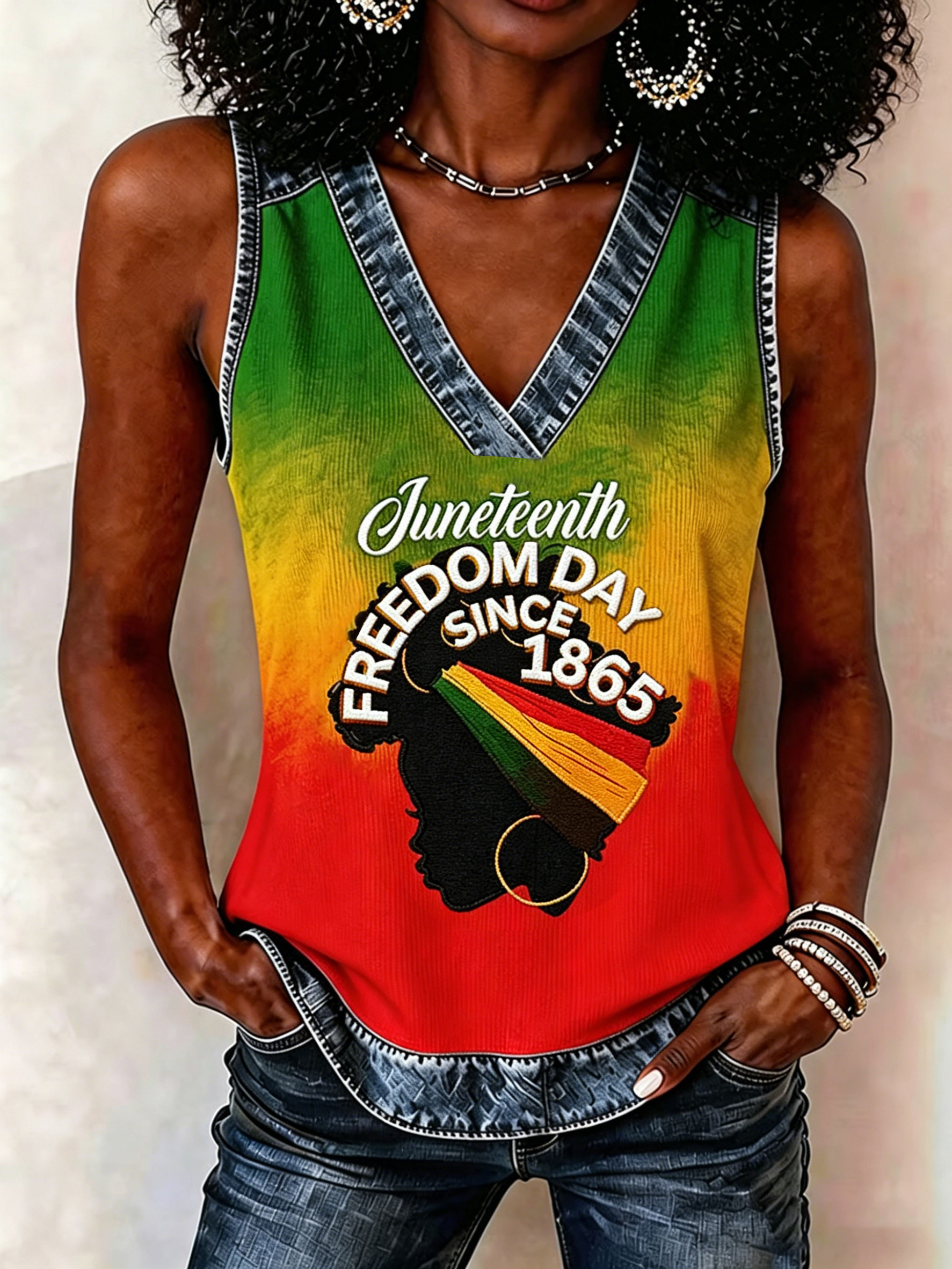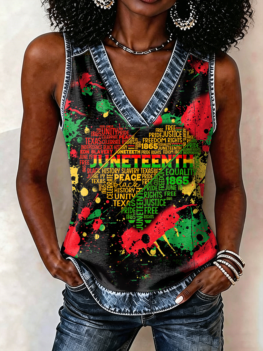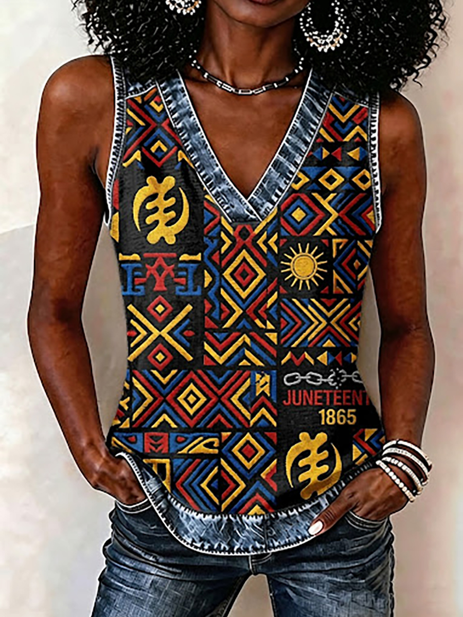 Women's Juneteenth Remebering My Ancestors Print V-Neck Tee