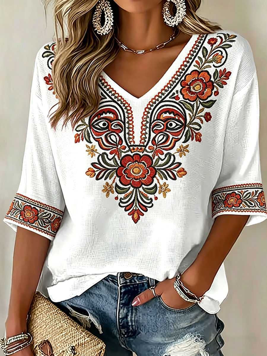 Women's Indigenous Floral Print Casual T-Shirt